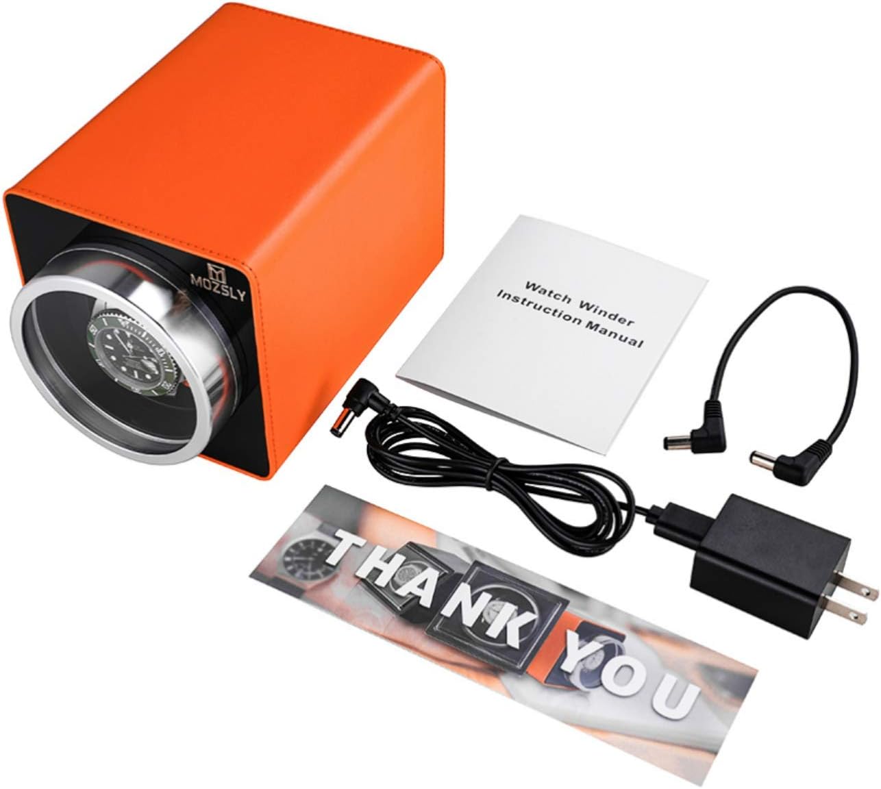 I purchased the Mozsly winder for my new watch. It has an attractive case with a screw-on cover. The winder is ultra quiet and appears to work as advertised. It was easy to open and insert the watch. Hopefully, this winder will last. I purchased the Amazon warranty just in case it stops working. This product is worth buying.