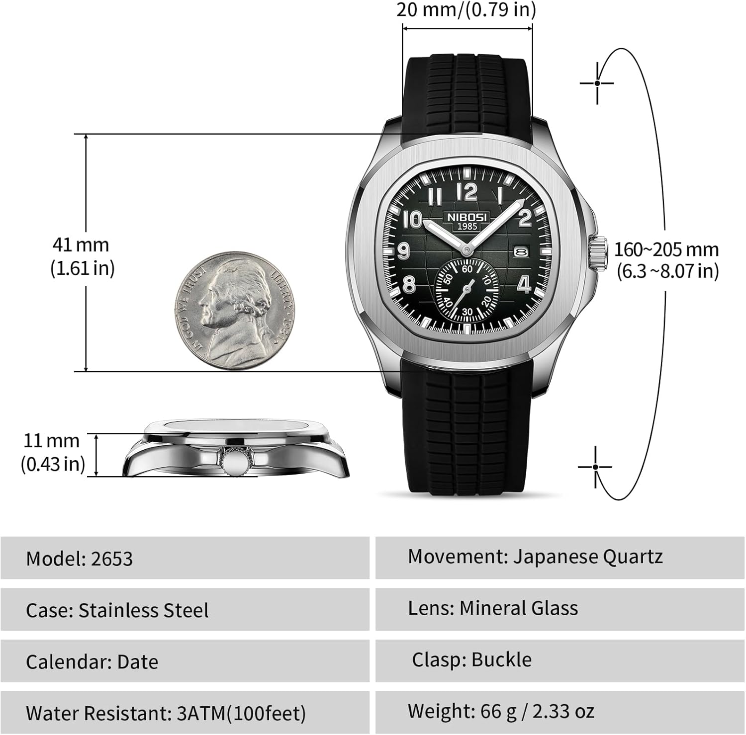 This NIBOSI watch is designed for men who value reliability and simplicity. Its robust yet lightweight build makes it ideal for daily wear across a range of environments—commuting to work, attending meetings, running errands, or enjoying casual social gatherings. The calendar function adds tangible value for those who need quick access to the date without relying on a phone or planner. The minimalist dial and neutral black silicone strap ensure it complements both formal and informal outfits, from tailored suits to jeans and a t-shirt. The 3ATM water resistance provides peace of mind during rainy days or accidental spills, though it should not be worn during water-based activities. Thanks to its comfortable fit and durable materials, it’s well-suited for extended wear, including long workdays or travel. While not a sports watch, it handles the rigors of everyday life with ease.