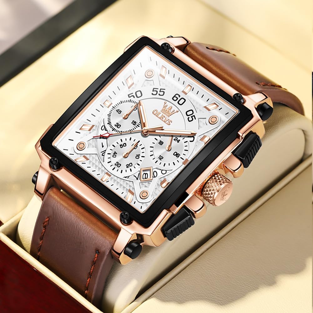 The OLEVS Brown Leather Watch for Men is a square-faced analog wristwatch that blends classic fashion with practical functionality. Designed for men who appreciate timeless style and reliable performance, this watch features a rich brown leather strap and a multifunctional dial that enhances everyday usability. Its casual yet refined appearance makes it suitable for both daily wear and semi-formal occasions. Built with essential features like water resistance and luminous hands, it delivers dependable timekeeping in a variety of settings. This watch offers a balanced mix of form and function for the modern man seeking a dependable accessory.