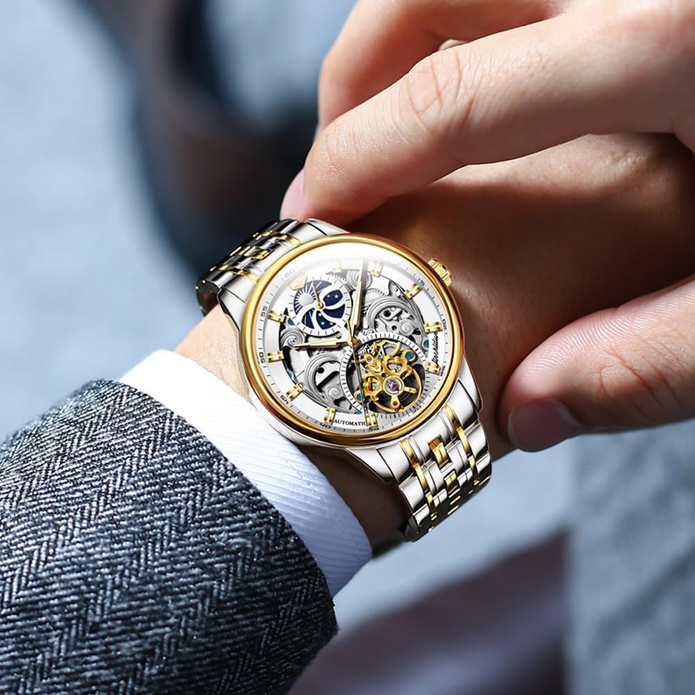 This watch is crafted for men who value both style and substance. Its skeleton dial and gold finish make it a standout accessory for formal occasions, weddings, or professional settings where attention to detail matters. The automatic movement appeals to those who prefer mechanical timepieces, offering a traditional alternative to battery-powered quartz watches. With no need for battery changes, it’s a low-maintenance option as long as it’s worn regularly.