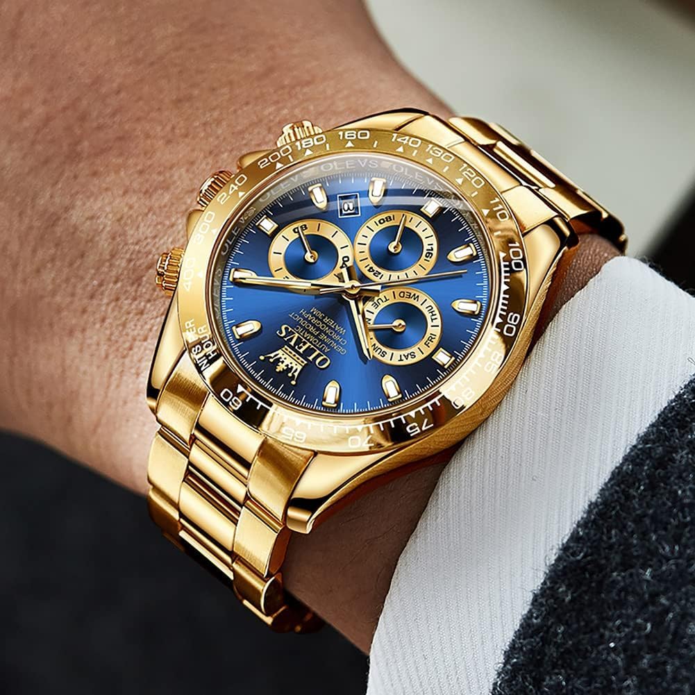 4 reviews for OLEVS Gold Watches for Men Automatic Self Winding Luxury Waterproof Watch Calendar Stainless Steel Business Luminous Men’s Wrist Watch