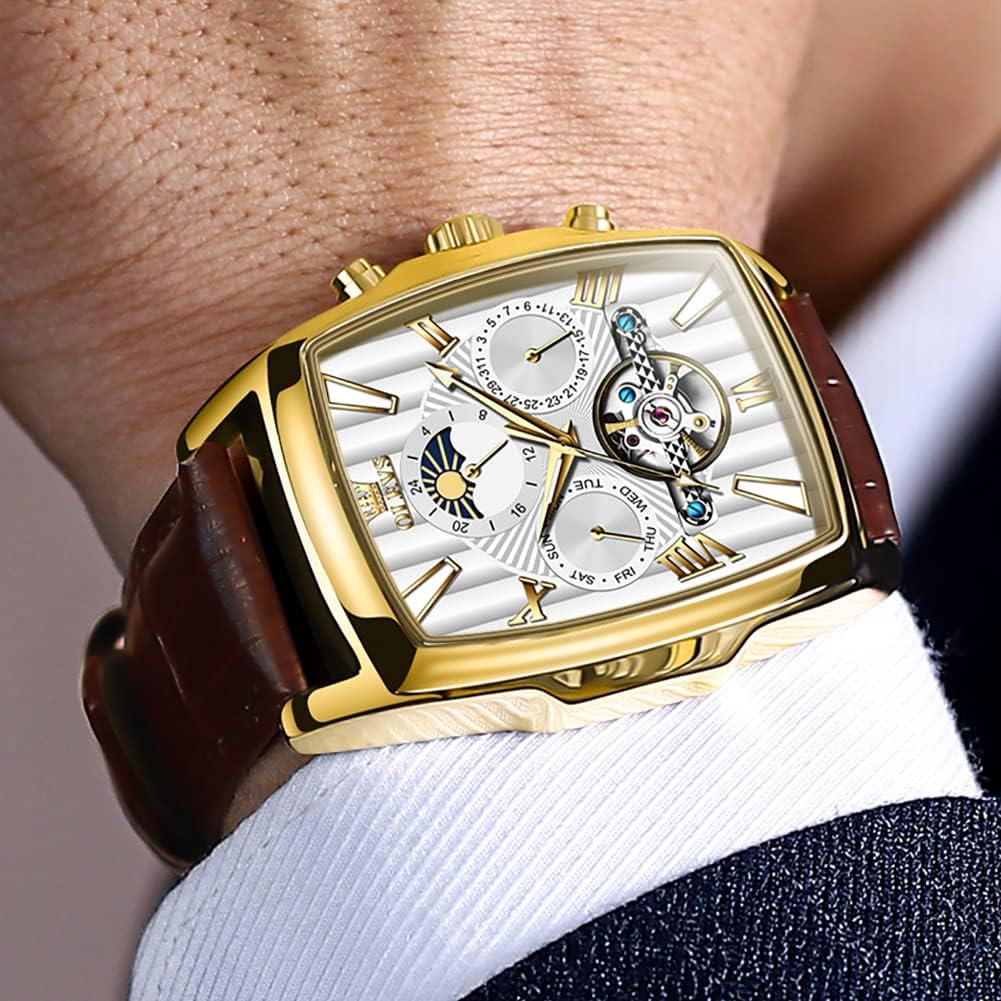 8 reviews for OLEVS Mechanical Dress Mens Watches Square Brown Leather Strap Moon Phase Skeleton Tourbillion Day Date Waterproof Luminous Men’s Wrist Watches