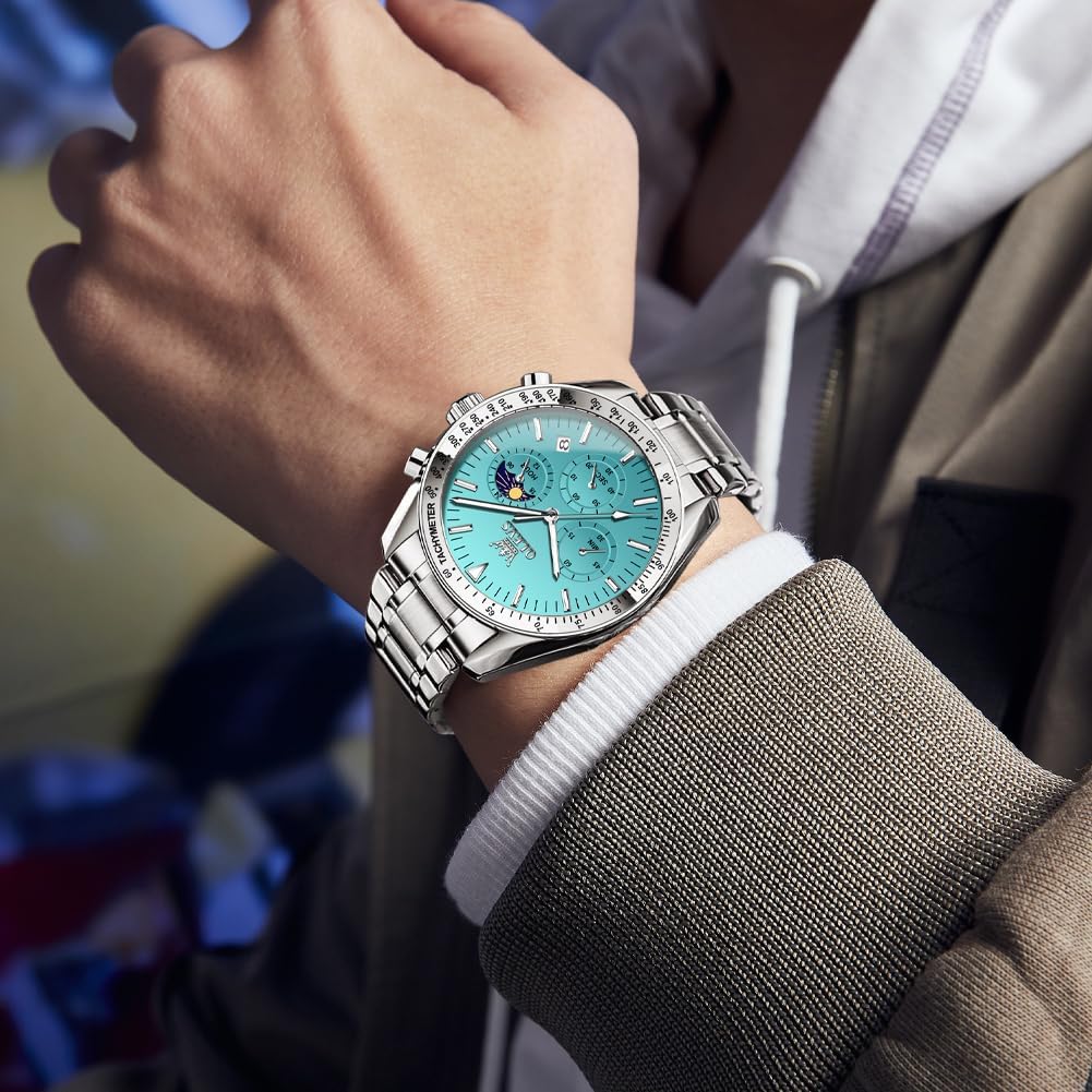 8 reviews for OLEVS Men Skeleton Watches Stainless Steel Analog Quartz Moon Phase Male Watch, Diamond Multi Calendar Chronograph Watch,Waterproof Wrist Watch for Men
