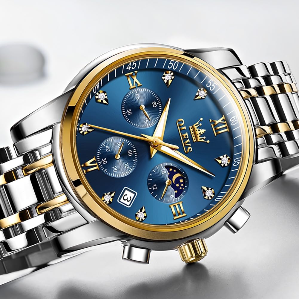 8 reviews for OLEVS Men Watches Square Business Dress Diamond Analog Quartz Date Luxury Watch for Men Casual Stainless Steel Waterproof Luminous Two Tone Wrist Watch