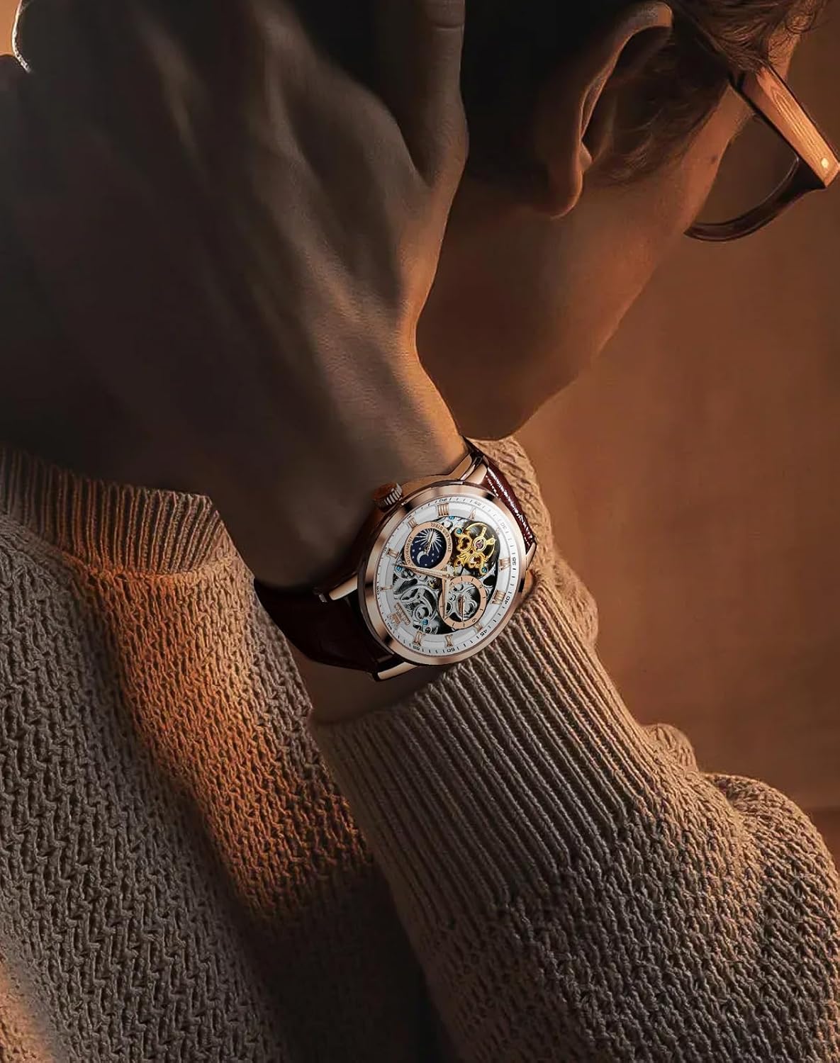This OLEVS automatic watch is designed for men who want a timepiece that performs as beautifully as it looks. Its self-winding mechanism makes it ideal for daily wear, especially for those who lead active lifestyles and prefer not to worry about battery changes. The luminous display ensures functionality in low-light settings, such as evening events, nighttime commutes, or dimly lit rooms. With 50-meter water resistance, it stands up to everyday moisture exposure, including handwashing, light rain, and brief immersion—perfect for casual water activities but not intended for deep-water use. The 43mm case offers a bold yet balanced presence on the wrist, making it suitable for both casual and formal attire. Whether you’re dressing for a business meeting, a dinner date, or a weekend outing, this watch adds a touch of sophistication. It also makes a thoughtful gift for someone who appreciates mechanical watches, craftsmanship, or luxury design.