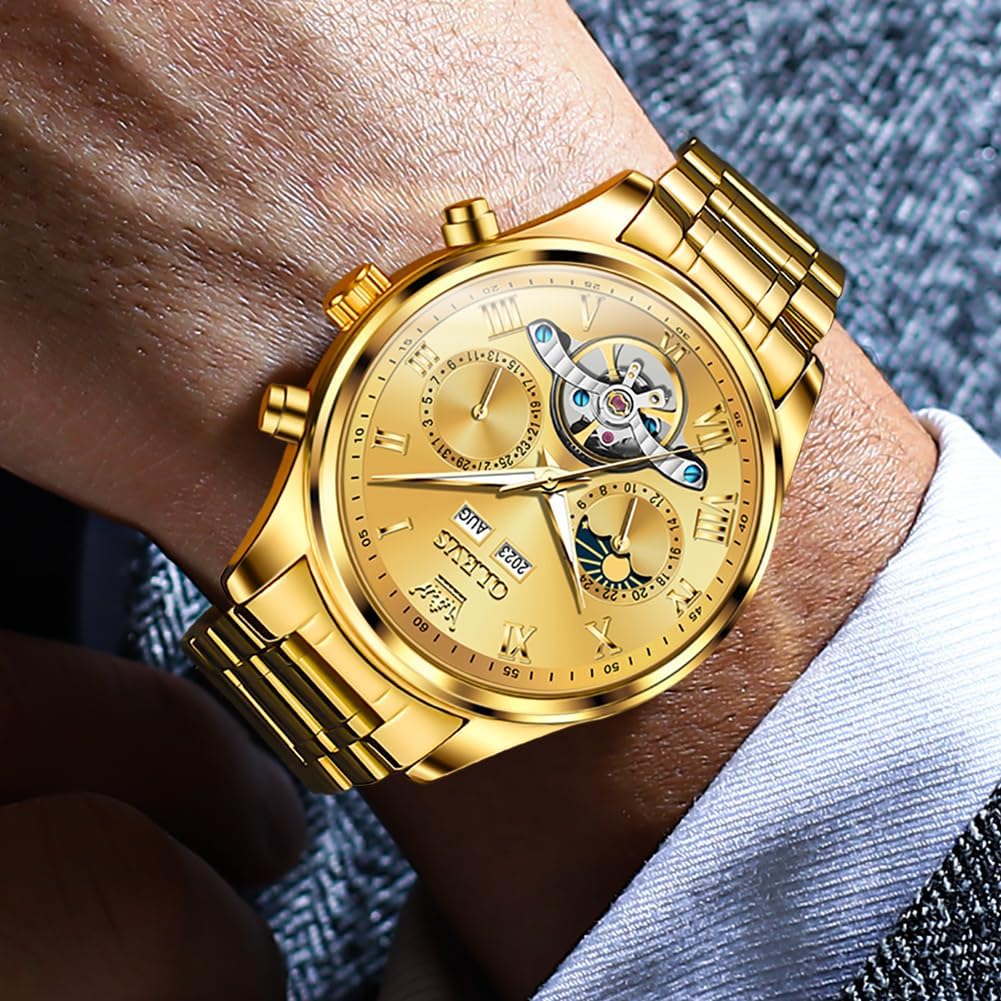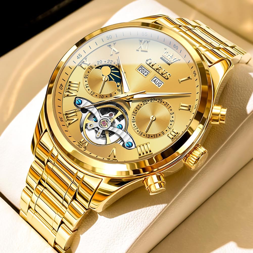 4 reviews for OLEVS Mens Automatic Watches Skeleton Tourbillon Self Winding Diamond Luxury Dress Wrist Watch Stainless Steel Waterproof Luminous Moon Phase Day Date
