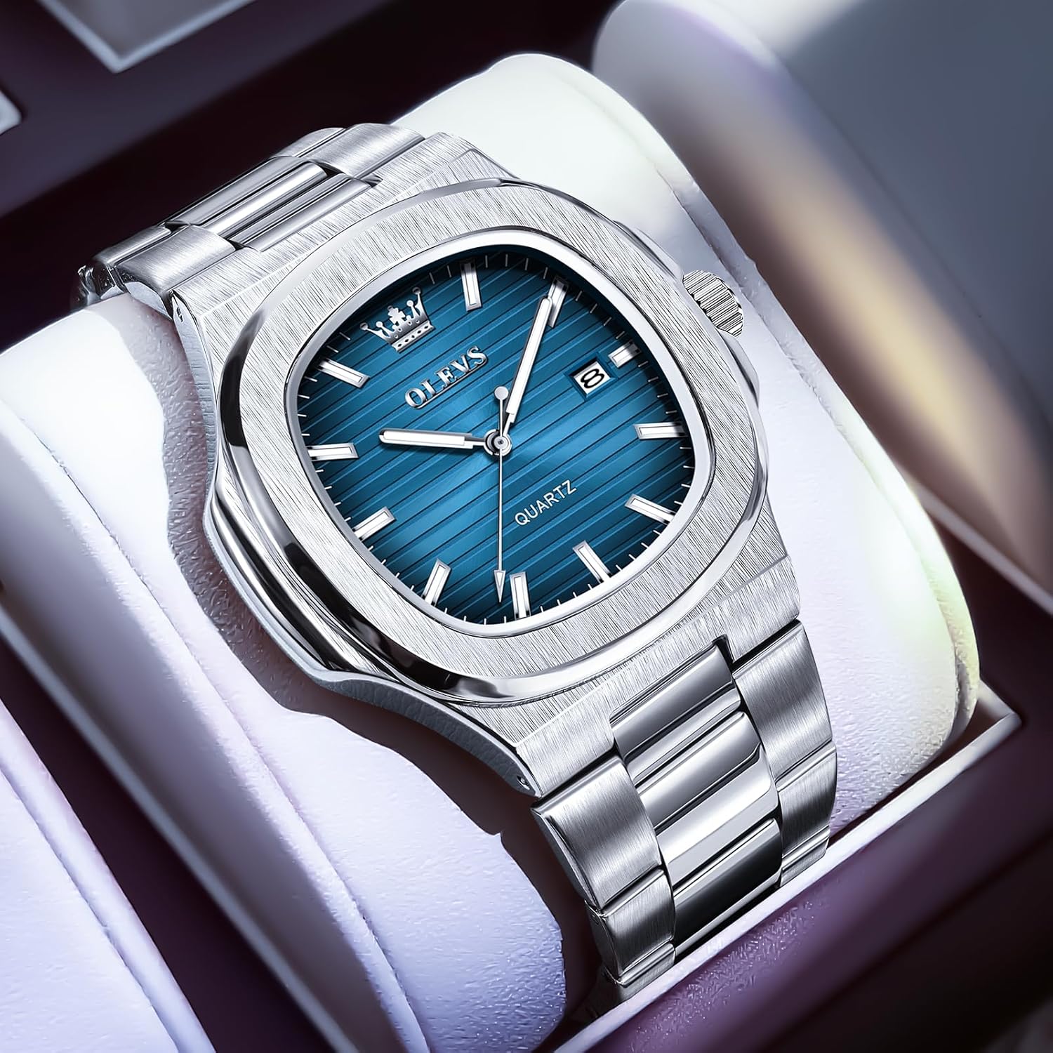 The OLEVS Men’s Large Face Stainless Steel Watch blends timeless elegance with practical functionality, making it a standout choice for men who value both aesthetics and reliability. Its bold octagonal bezel and generously proportioned dial create a commanding presence on the wrist without appearing overly bulky. The porthole-inspired case design adds a distinctive architectural flair, setting it apart from conventional round watches while maintaining a refined, dress-appropriate silhouette. Crafted with a durable stainless steel case and band, this timepiece is built to withstand daily wear while retaining its polished appearance. Powered by a dependable three-hand quartz movement, it delivers accurate timekeeping with minimal upkeep—ideal for busy lifestyles. The mineral crystal face resists scratches and maintains clarity, ensuring the dial remains sharp and legible over time. Whether worn with a tailored suit, a crisp dress shirt, or smart-casual attire, this watch enhances any outfit with understated sophistication.