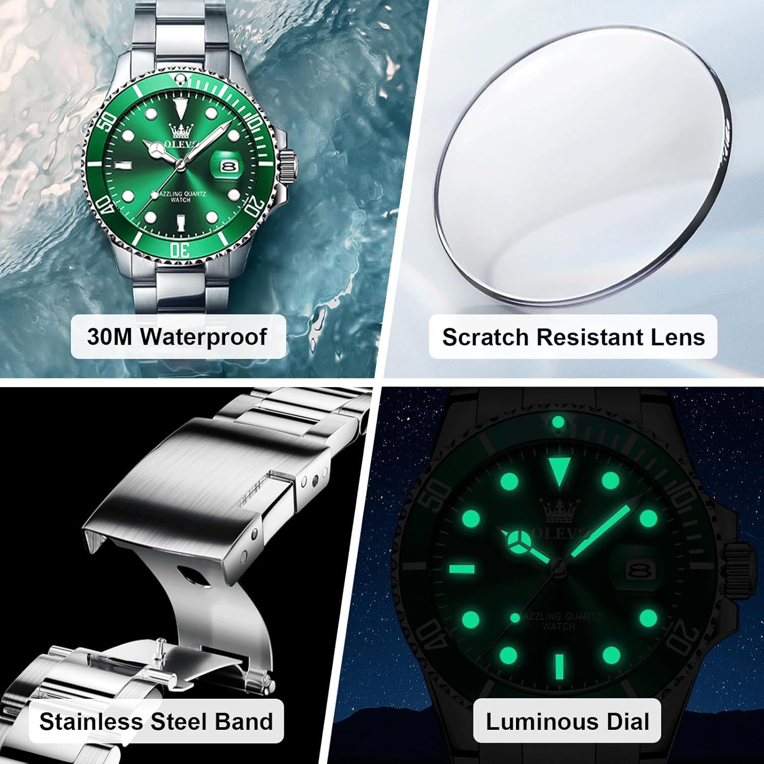 8 reviews for OLEVS Men’s Stainless Steel Watch, Easy to Read Gold Silver Two Tone Analog Quartz Wristwatch, Luxury Rotating Bezel Magnified Date Waterproof Luminous Dress Watches for Men