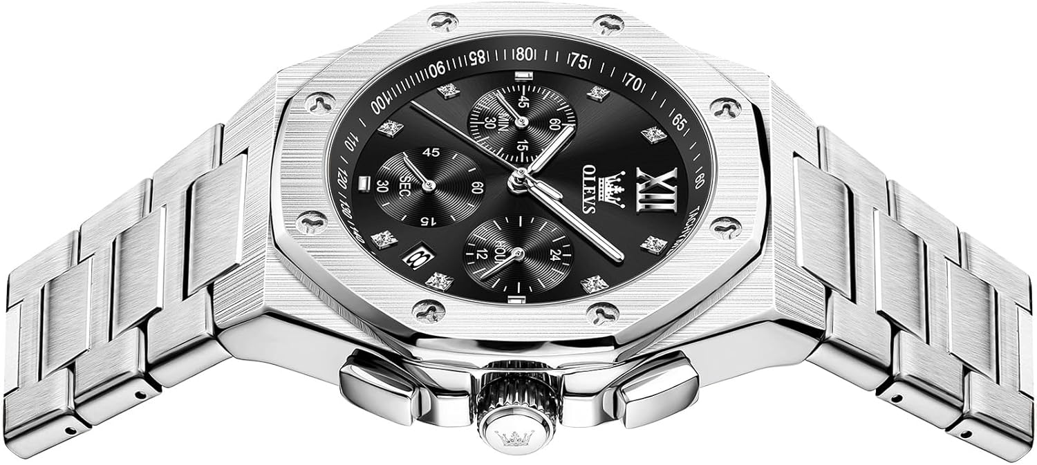 The OLEVS Men’s Stainless Steel Watch blends bold architectural design with practical everyday features, creating a timepiece that stands out without sacrificing function. At the heart of this watch is a large octagonal face that offers a modern twist on classic watch styling, giving it a distinctive presence on the wrist. Powered by reliable quartz movement, it delivers consistent, accurate timekeeping with minimal upkeep—ideal for men who want dependability without the hassle of frequent adjustments. The three-hand analog display ensures clarity, while the integrated date calendar adds a layer of daily utility. Built for real-world use, this watch features a luminous dial that remains visible in low-light conditions and a waterproof design that handles everyday exposure to moisture. Crafted entirely from stainless steel, both the case and band resist corrosion and wear, maintaining their polished look through daily use. Whether you’re dressing for the office, heading out on a weekend trip, or simply running errands, this watch complements a variety of settings with its balanced mix of style and substance.