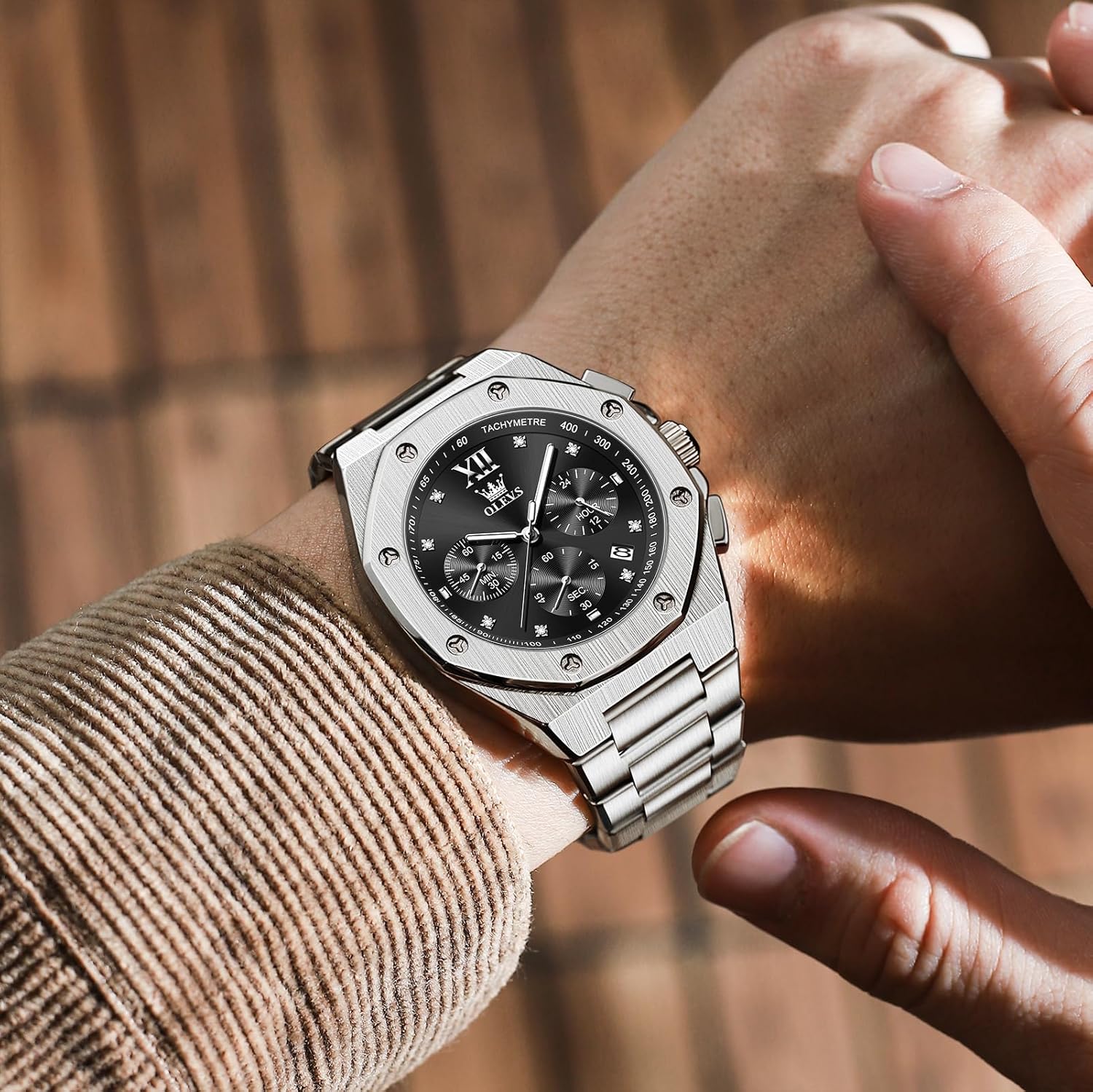 - Octagonal Case Design: The eight-sided bezel gives this watch a unique geometric profile that sets it apart from traditional round watches. This design choice adds a contemporary edge while preserving a masculine, structured appearance that works well across casual and semi-formal outfits.