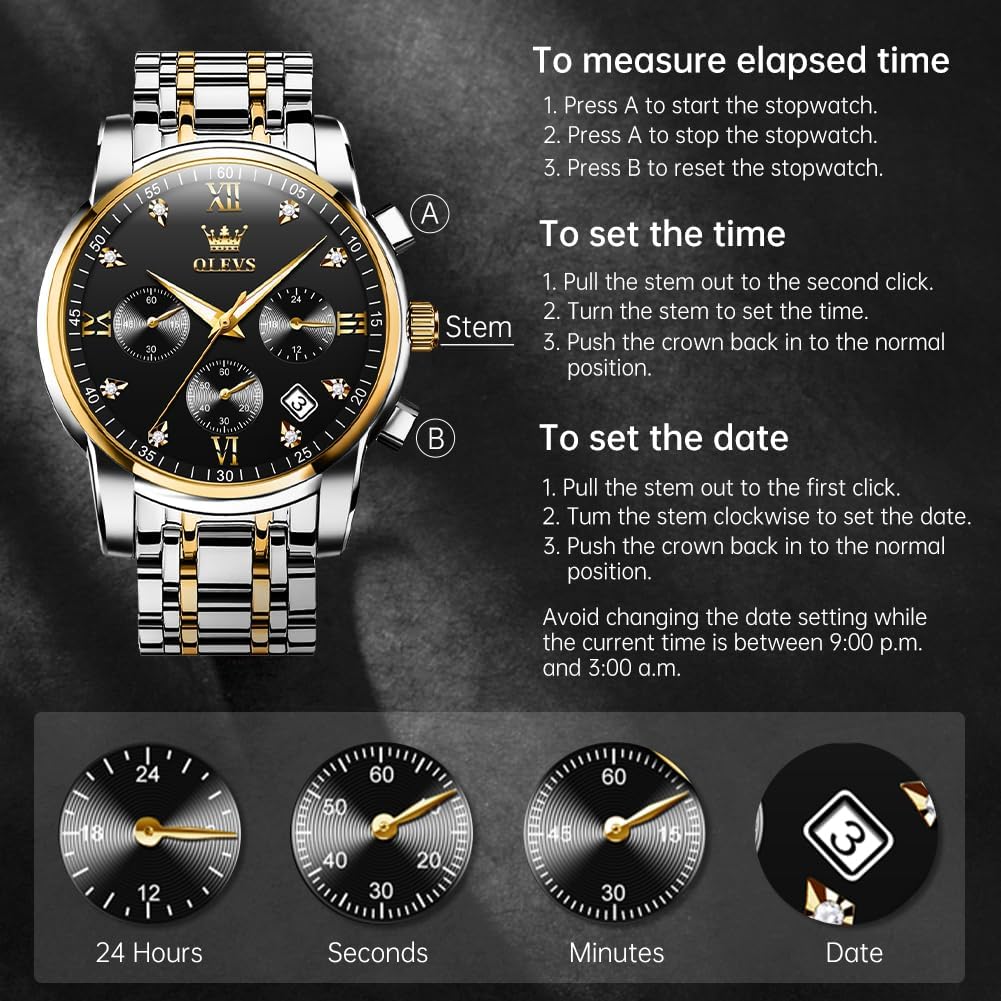 - Chronograph Function: Equipped with subdials for measuring elapsed time, the chronograph acts as a reliable stopwatch. Use it to time workouts, track cooking intervals, monitor presentations, or manage daily tasks with precision.