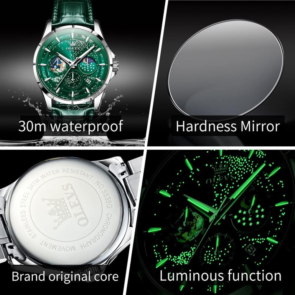 “,n”focus_keyword”:”men’s luxury dress watch”,n”seo_title”:”OLEVS Men’s Starry Sky Moon Phase Dress Watch”,n”meta_description”:”OLEVS men’s watch with starry sky moon phase dial, quartz movement, luminous hands, date function, and waterproof design. Ideal for business and casual wear.”}