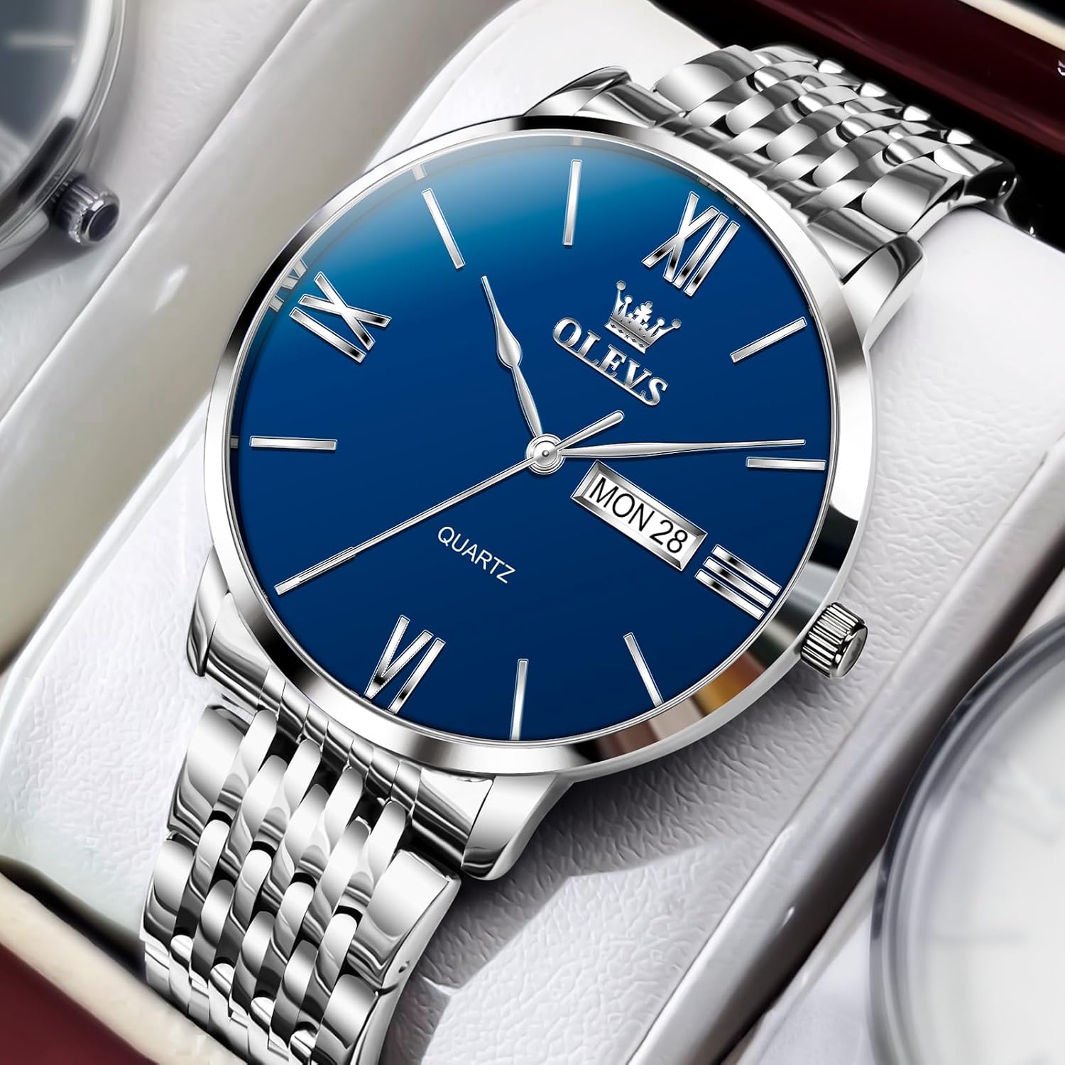 This OLEVS men’s watch is built for real-life wear, offering a blend of style and substance that suits a variety of daily routines. Its minimalist Roman numeral dial and stainless steel band give it a refined look that works well in office settings, meetings, or formal events, while still being casual enough for dinners, travel, or weekend activities. The 30M water resistance provides peace of mind during everyday exposure to moisture—such as washing hands, walking in the rain, or accidental spills—without risking damage to the internal mechanisms.