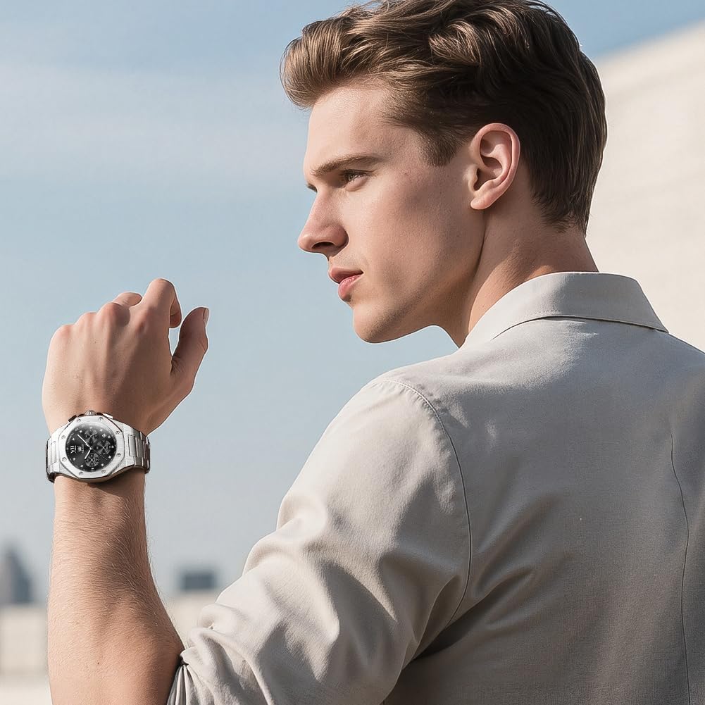 - Comfortable Fit – The stainless steel band is designed for all-day comfort, with a secure clasp and adjustable links to accommodate various wrist sizes. Its balanced weight and smooth finish ensure it sits comfortably without pinching or irritation.
