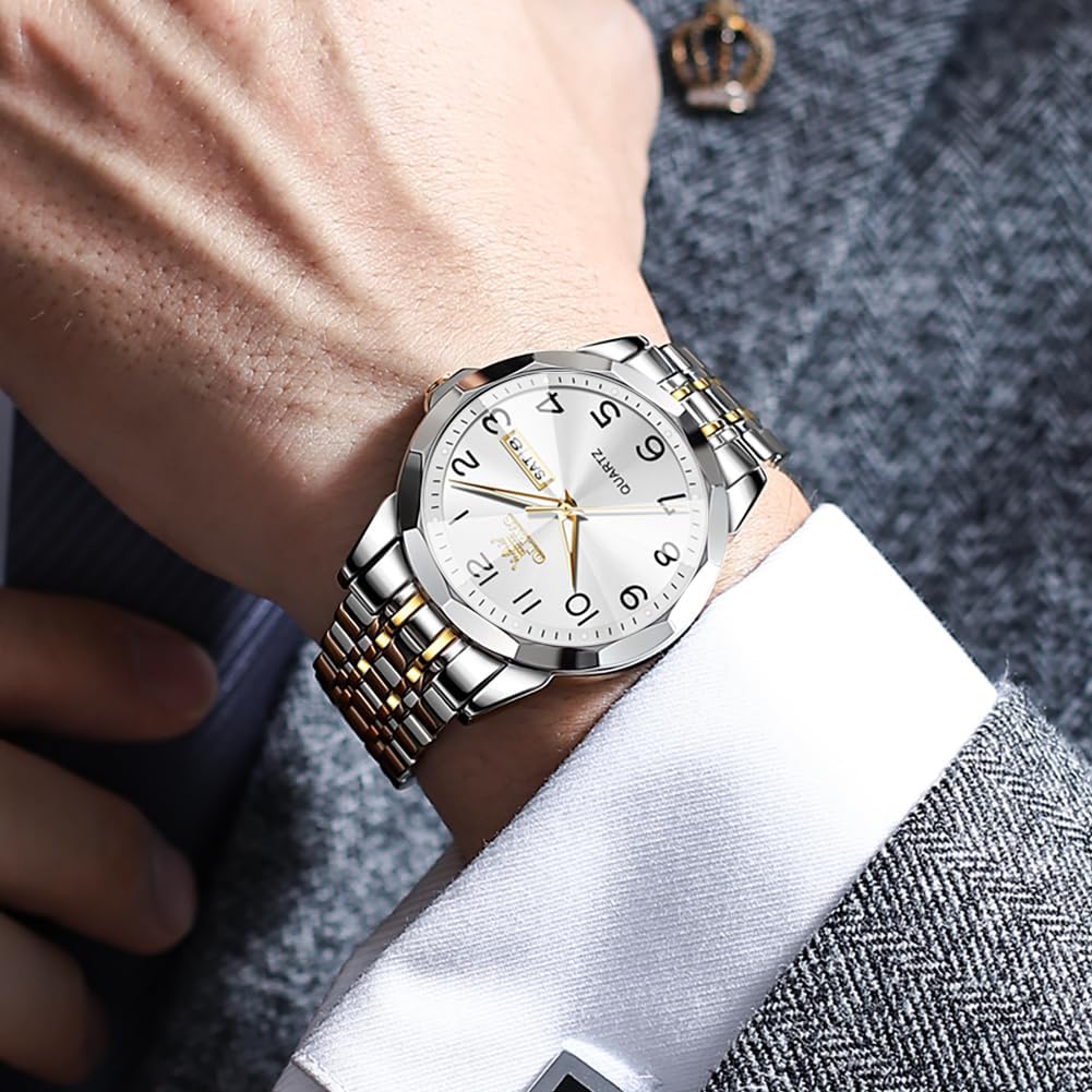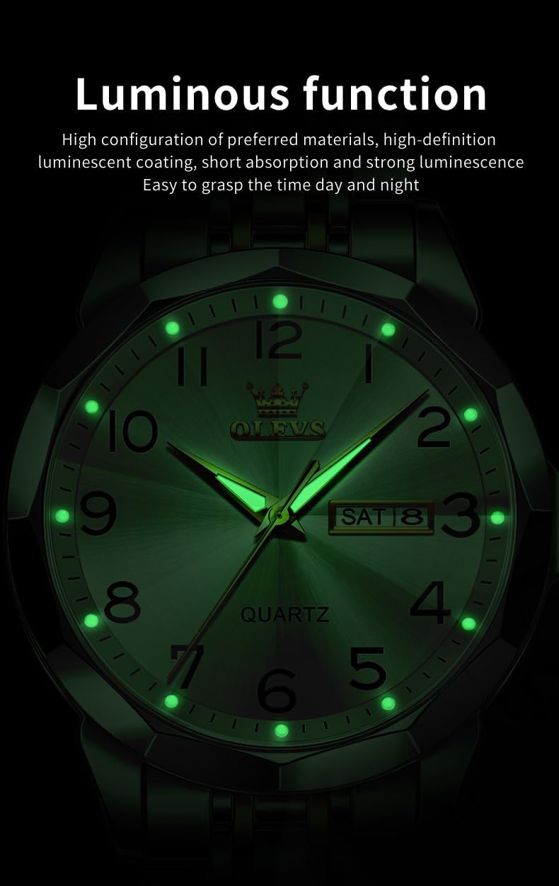This OLEVS watch is ideal for men who want a dependable, no-frills timepiece that performs well in a variety of settings. Its stainless steel construction ensures durability without sacrificing style, making it appropriate for office environments, formal events, or casual outings. The waterproof rating adds practical value for daily routines—whether you’re washing your hands, caught in the rain, or handling light moisture, the watch remains protected. The luminous dial enhances usability in low-light situations, such as early morning commutes or evening engagements, while the date function supports everyday planning. Thanks to its lightweight design, the watch sits comfortably on the wrist for extended periods, reducing fatigue during long workdays or travel. The analog display appeals to those who prefer traditional timekeeping over digital interfaces, offering a timeless look that never goes out of style. It pairs well with dress shirts, blazers, jeans, or casual tees, making it a versatile addition to any wardrobe. Additionally, it serves as a thoughtful gift for milestones such as graduations, job promotions, or birthdays—offering both utility and lasting value.