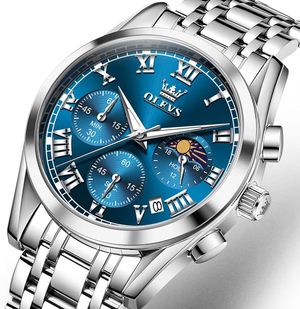 This OLEVS watch is built for the modern man who wants a timepiece that performs as well as it looks. The large, easy-to-read dial with Roman numerals makes it a standout accessory in professional environments, while the chronograph and date functions support daily planning and time management. The stainless steel construction ensures long-term durability, resisting the wear and tear of regular use—whether you’re typing at a desk, shaking hands in meetings, or enjoying outdoor activities. Its waterproof capability means you can wear it confidently during daily routines like washing your hands or getting caught in a sudden downpour. The watch complements a wide range of styles, pairing effortlessly with dress shirts, blazers, or casual button-downs and jeans. It’s a reliable choice for travel, work, or weekend adventures, offering both form and function in one cohesive design.