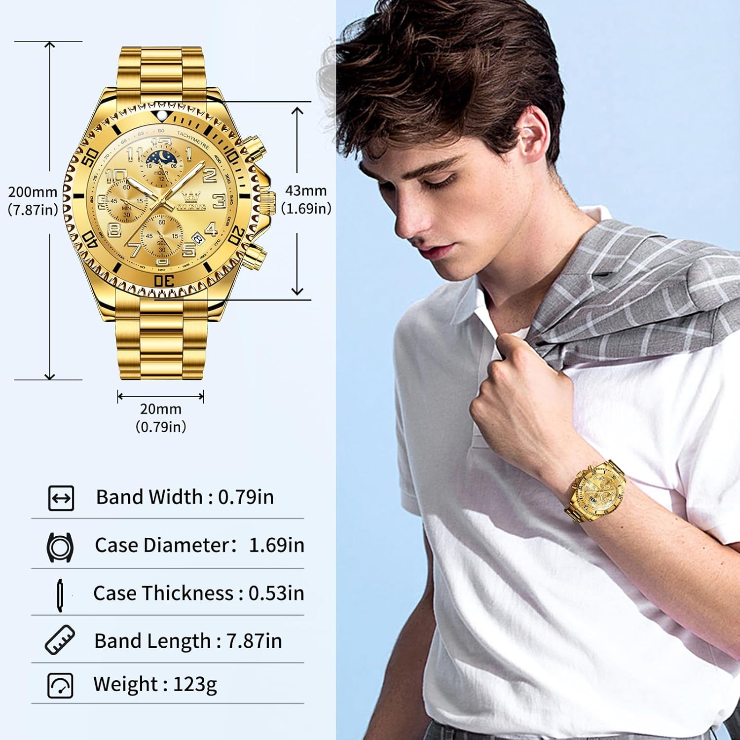 This OLEVS watch is ideal for men seeking a dependable and stylish accessory that performs well across a range of settings. The chronograph function supports active lifestyles—whether timing a workout, tracking meeting durations, or managing daily tasks. The date display enhances organization, helping you stay on top of appointments and schedules. Thanks to its water-resistant build, you won’t need to remove it during routine activities like handwashing or walking in the rain. The stainless steel construction ensures the watch resists tarnish and maintains its appearance over time, even with frequent use. With multiple dial color options, it’s easy to find a version that pairs well with your existing wardrobe, whether you’re dressing for a formal event or adding a refined touch to casual wear. The large dial not only improves visibility but also gives the watch a confident, modern presence on the wrist.