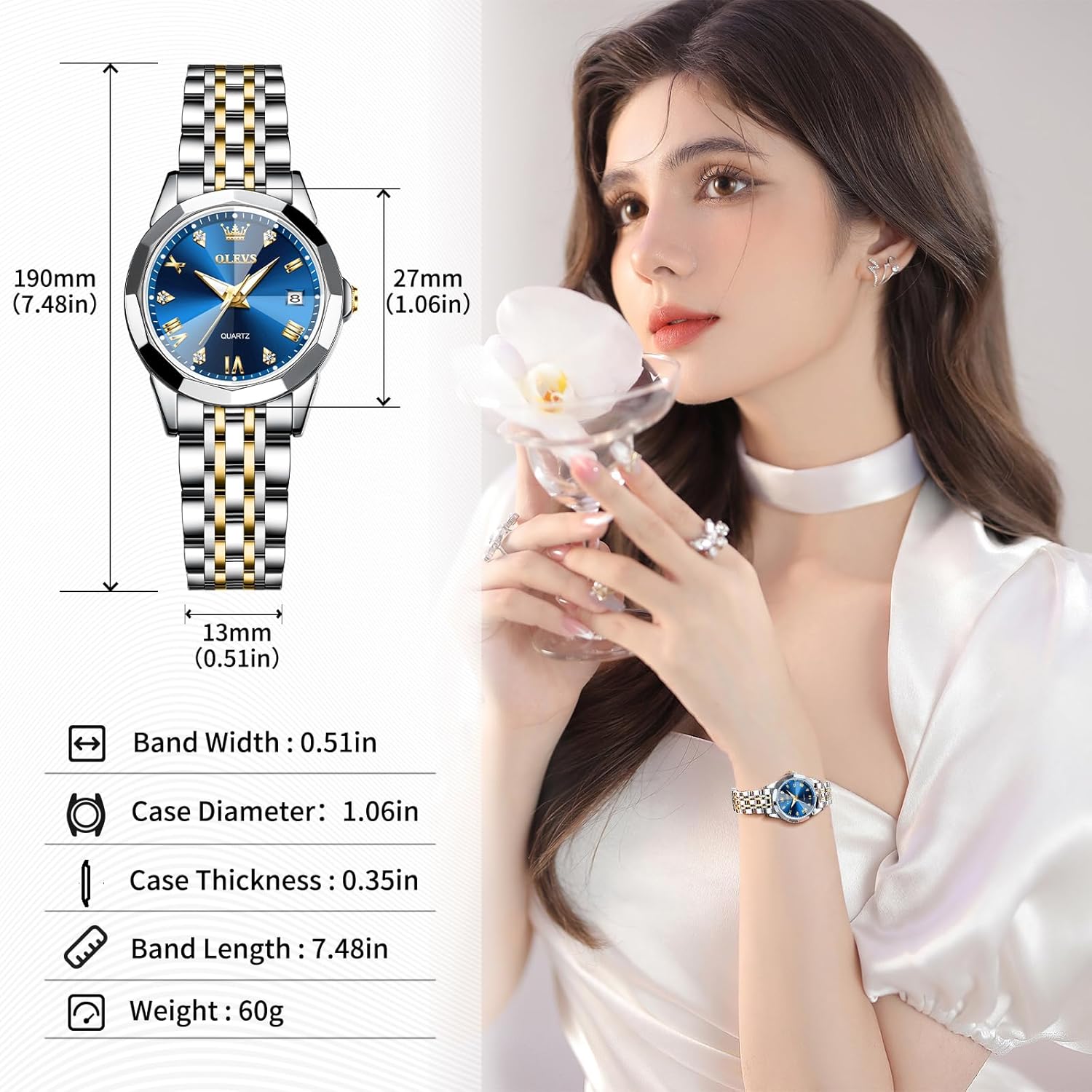 OLEVS Watches Women with Date Silver Stainless Steel Luxury