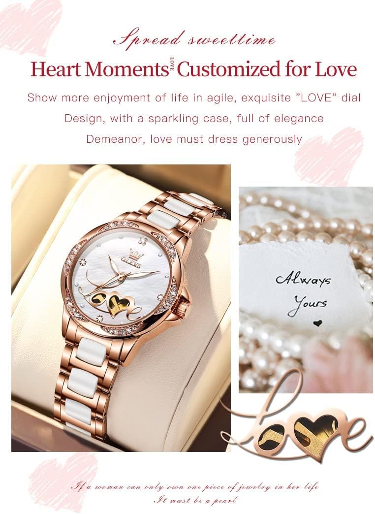 This OLEVS automatic watch is designed for women who seek a harmonious blend of functionality and fashion. Its self-winding mechanism makes it ideal for daily wear—simply wearing it throughout the day keeps it powered, perfect for busy lifestyles where convenience is key. The rose gold and ceramic construction ensures it pairs effortlessly with both professional attire and evening wear, making it suitable for office environments, social gatherings, and formal dinners. The skeleton dial adds a unique conversation starter, appealing to those who appreciate mechanical watches and the craftsmanship behind them. Thanks to its durable materials and elegant design, it also serves as a thoughtful gift for birthdays, anniversaries, or milestones, offering lasting value and style that transcends trends.