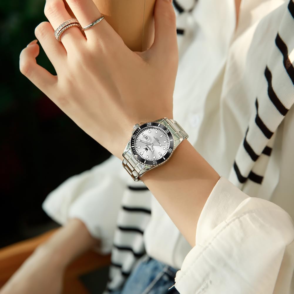 This OLEVS watch is built for women who want a single timepiece that transitions effortlessly from professional to personal settings. Its classic dress design makes it appropriate for office environments, business meetings, or formal dinners, while the durable construction supports regular use without compromising style. The luminous feature ensures you can check the time in low-light conditions—whether you’re leaving work after sunset or navigating a dimly lit restaurant. The waterproof rating adds practical value for daily routines, protecting the watch from rain, sweat, or accidental spills. Professionals, students, and busy individuals will appreciate the day-date display, which helps keep schedules organized at a glance. The two-tone finish pairs well with both silver and gold jewelry, giving you styling flexibility without needing multiple watches. Lightweight and comfortable, it’s ideal for all-day wear, from morning commutes to evening events.