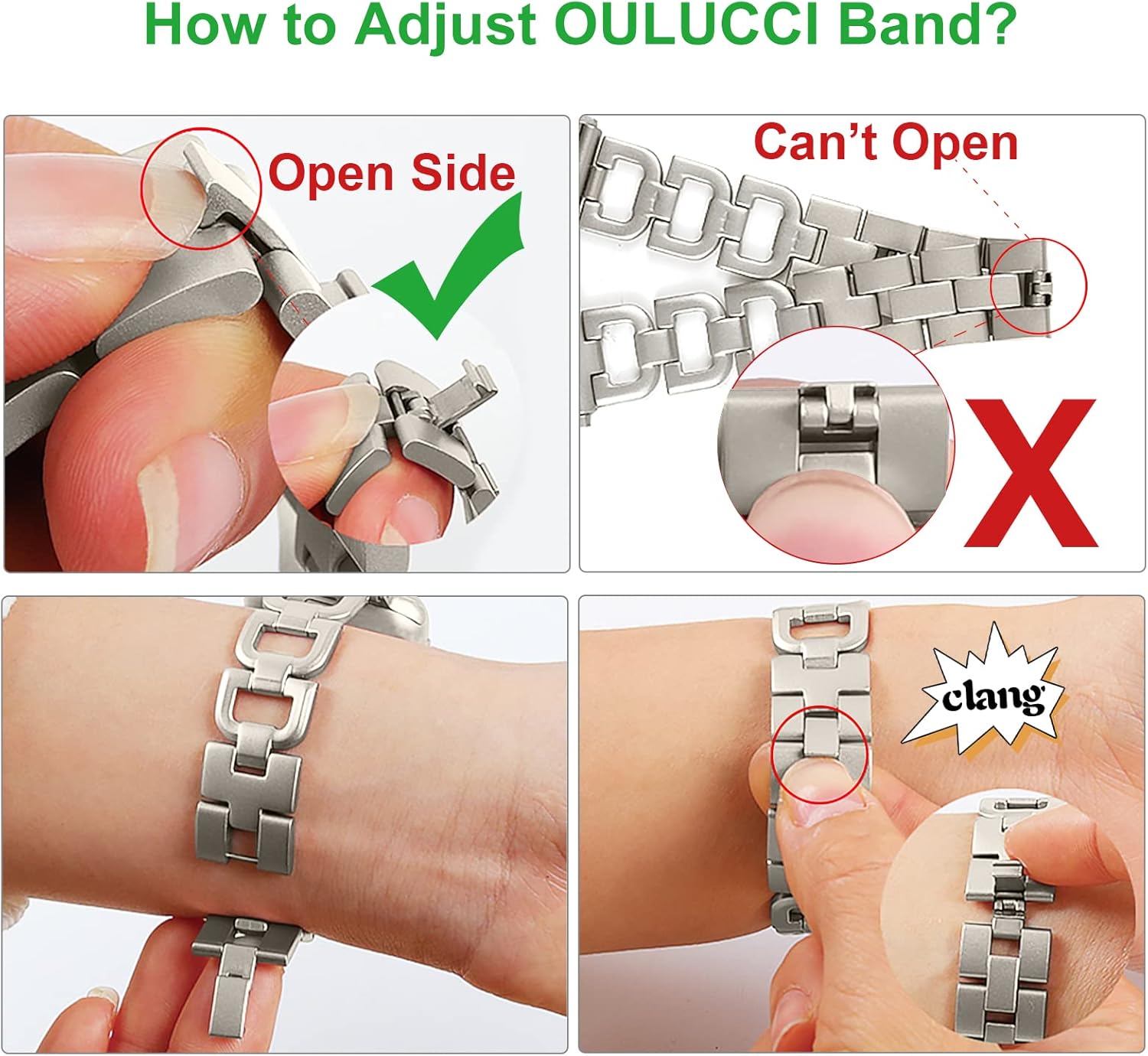 EASY TO RESIZE: Open the ‘Folding Clasp Links’ using your finger. Remove one or more to resize. No tool is needed.