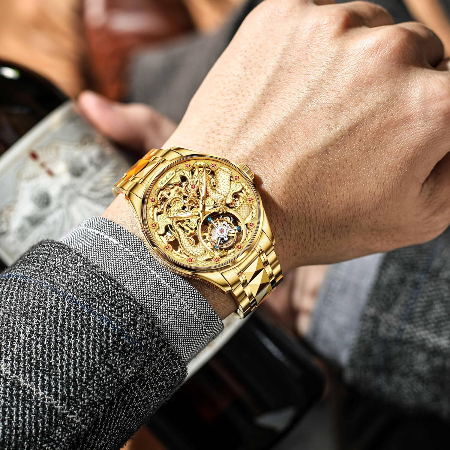 OUPINKE Mens Automatic Watch Diamond Skeleton Mechanical
