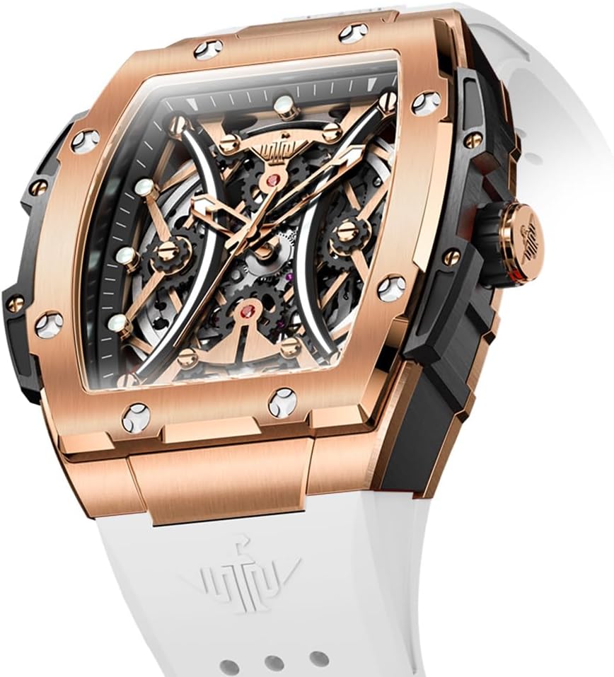 - Skeleton Dial Design – The open-heart dial reveals the complex gear train, balance wheel, and oscillating rotor in motion. This transparent design is not just visually striking—it celebrates the engineering precision behind mechanical watches, turning every glance at your wrist into a moment of appreciation.
