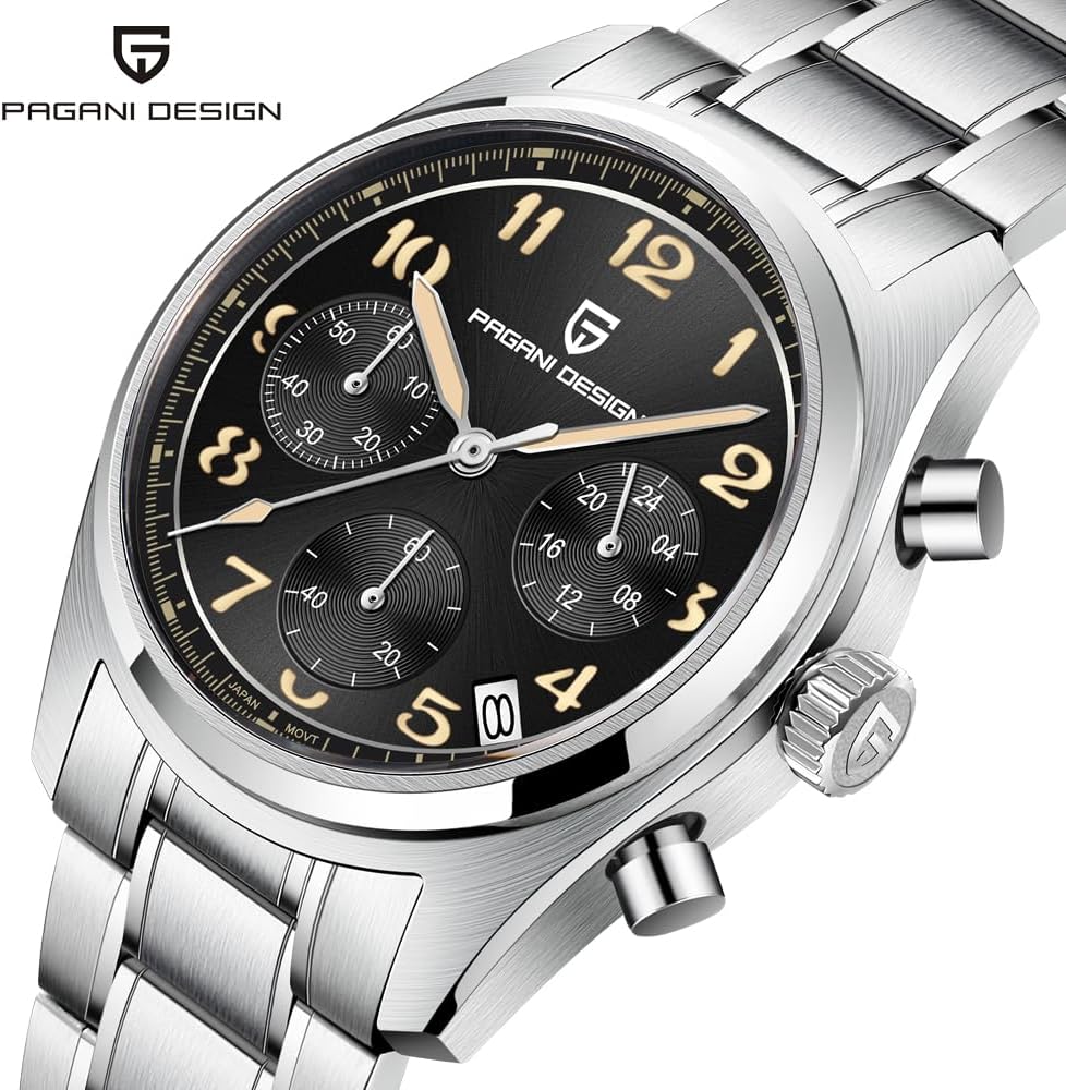 Pagani Design Watches for Men Analog Daytona Multifunctional Quartz Chronograph Watch Japan VK63 Movement Stainless Steel Waterproof Calendar Luminous Business Men’s Wrist Watches