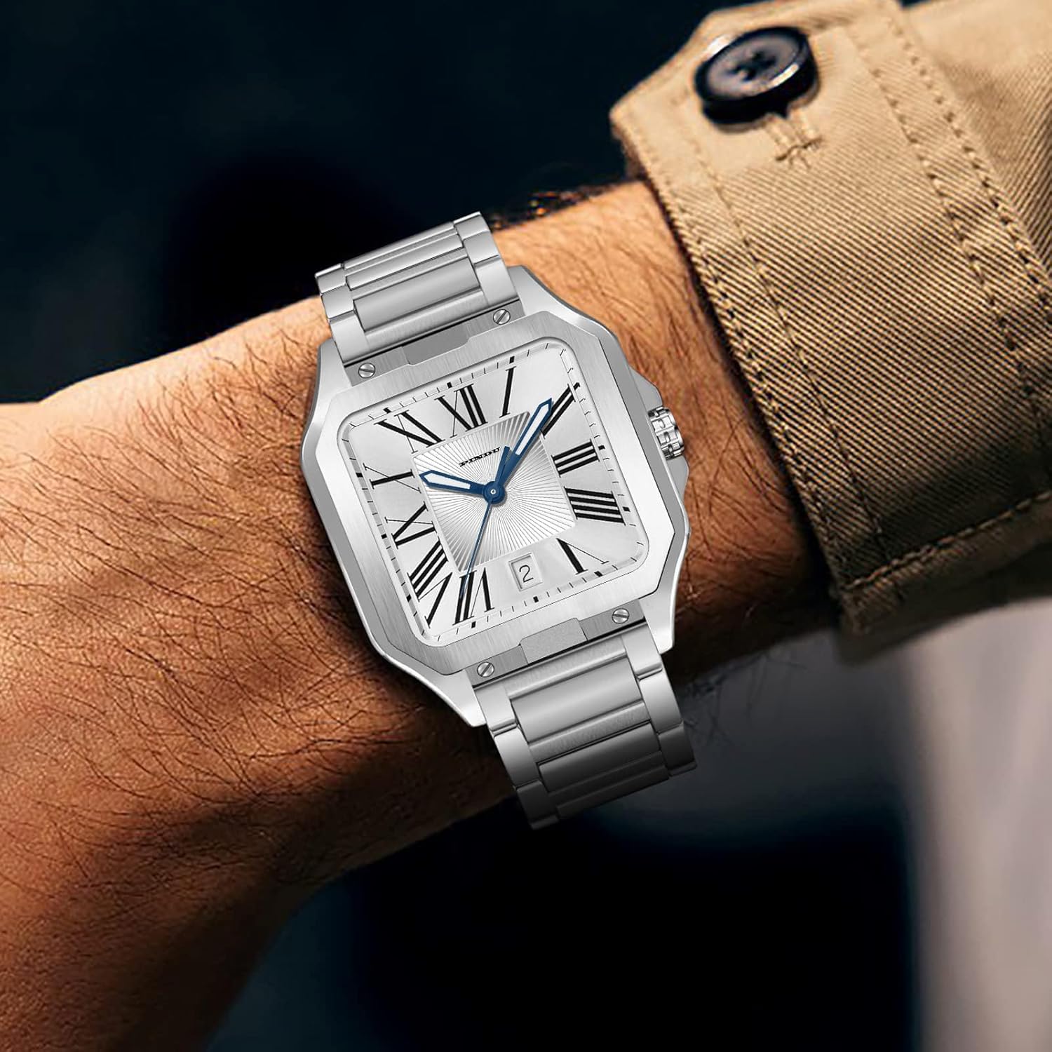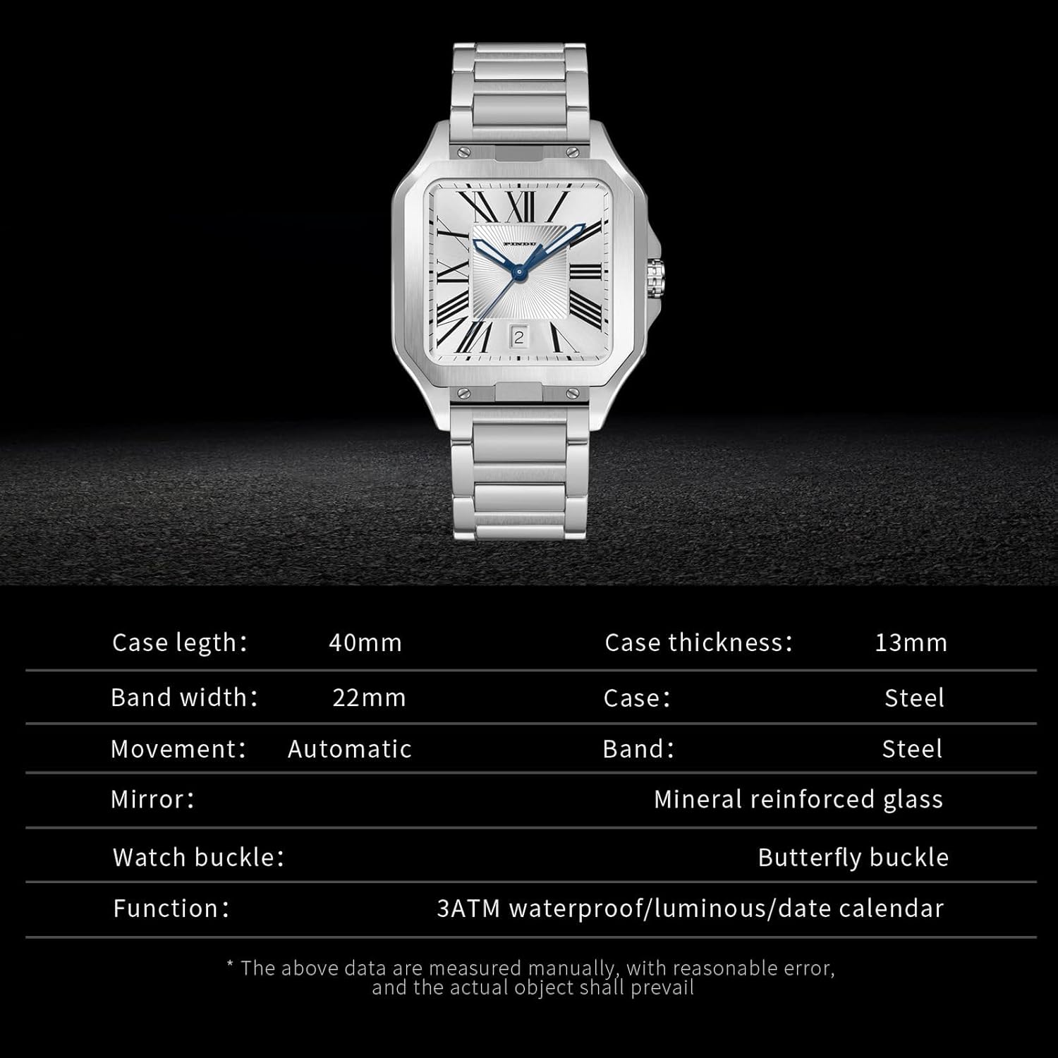 12 reviews for PINDU Automatic Watches for Men, Tank Business Dress Watch Square Mechanical Watch Mens Watches Simple and Easy to Read