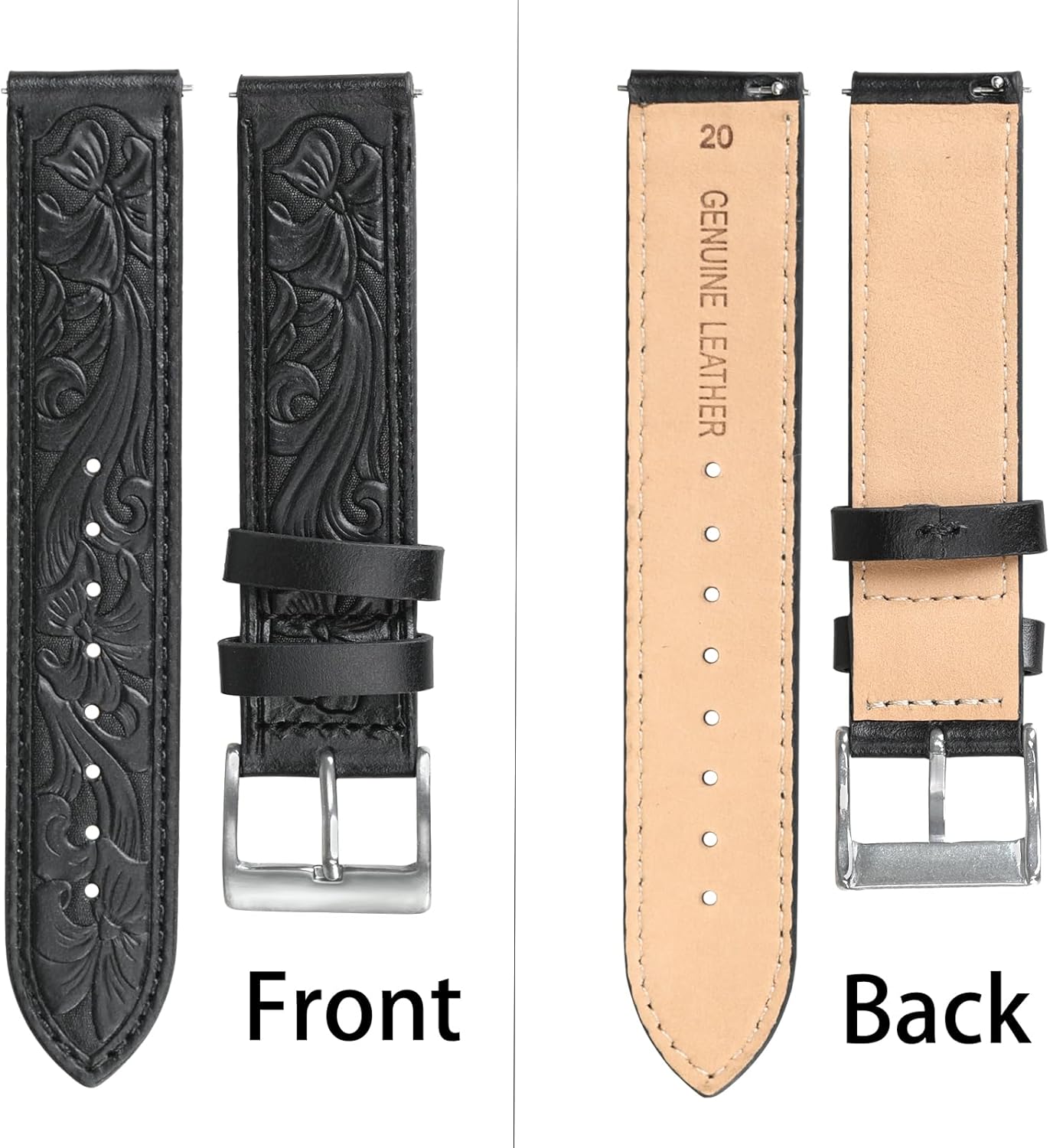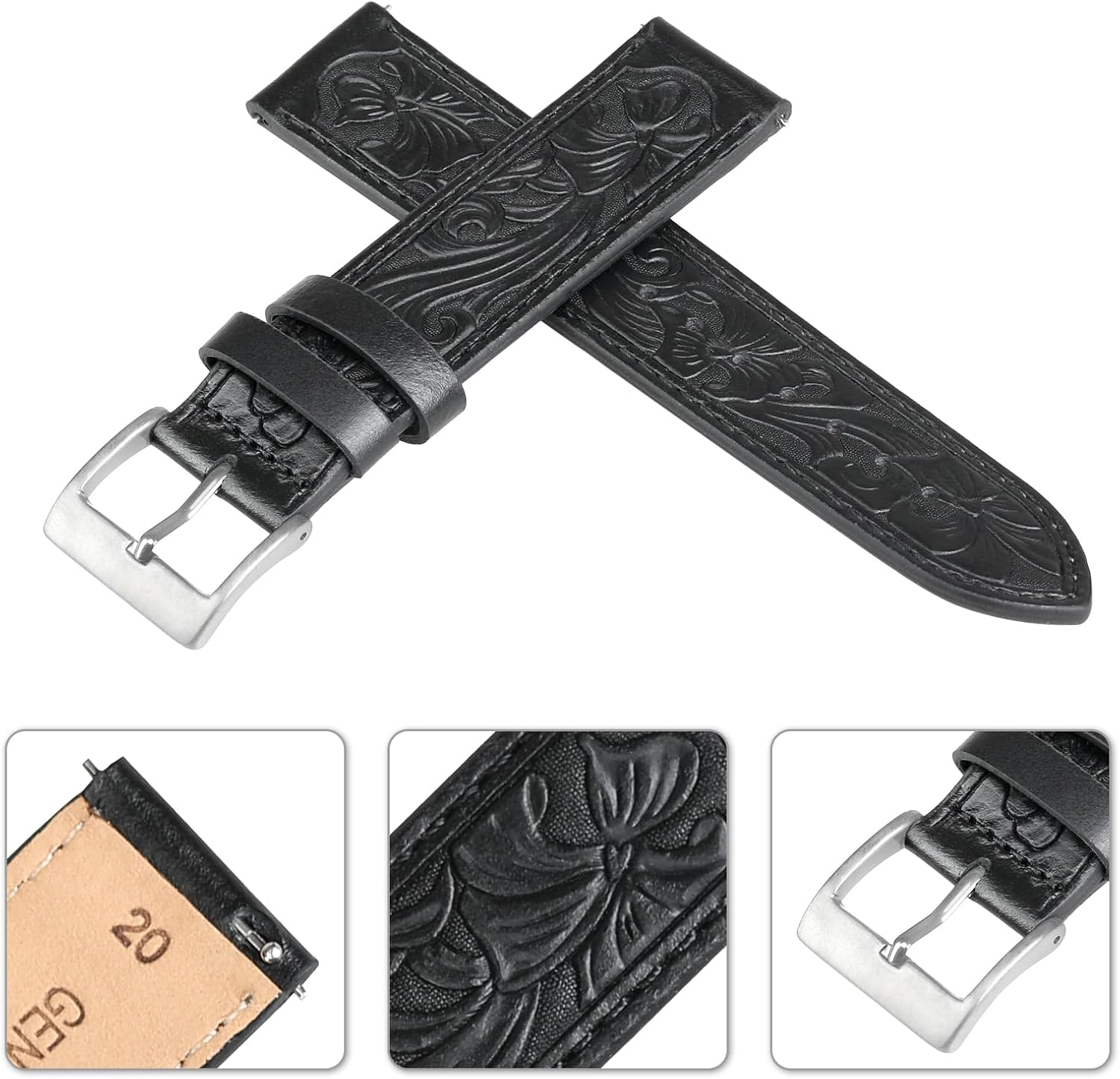I’ve purchased a lot of watch bands, this one is my favorite. the first thing I noticed when I opened the package was that beautiful smell of Genuine Leather. I’ve opened other things that should be leather that had no smell or a chemical smell. This is the real stuff. Soft but durable and the western design really makes my watch pop