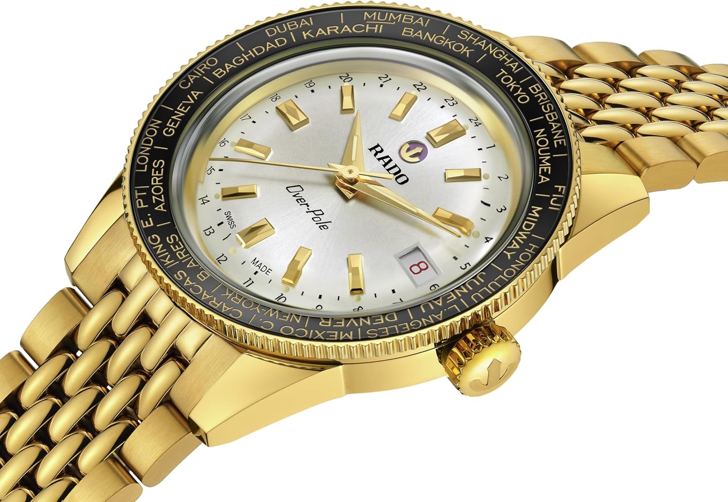 The Rado Captain Cook Over-Pole is engineered for those who value both form and function in their timepieces. Its unisex design appeals equally to men and women seeking a versatile accessory that transitions seamlessly from office environments to casual weekends. At 39mm, the case sits comfortably on medium to large wrists, offering legibility and presence without excessive bulk. Whether paired with the sleek yellow gold PVD bracelet for a polished look or swapped to the included rugged brown leather strap for a more adventurous vibe, the Easy-Clip system ensures instant style adaptation—ideal for travelers or anyone who appreciates functional versatility.
