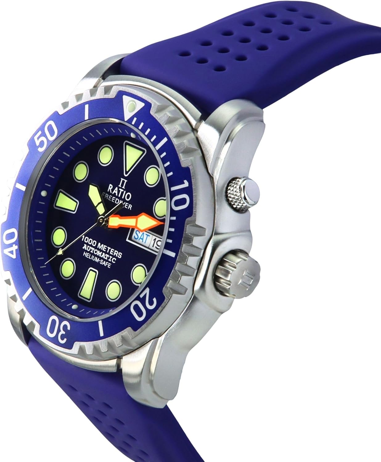 The RATIO FreeDiver Helium-Safe Dive Watch is a precision-engineered automatic diver’s watch built for serious underwater exploration and everyday wear. Designed for divers, adventurers, and watch enthusiasts, it combines professional-grade durability with a timeless aesthetic rooted in classic dive watch standards. Its standout feature—a fully functional helium escape valve—makes it ideal for saturation diving, while its rugged construction ensures reliability in extreme conditions. Whether you’re descending to great depths or navigating daily life, this watch delivers both performance and presence on the wrist.