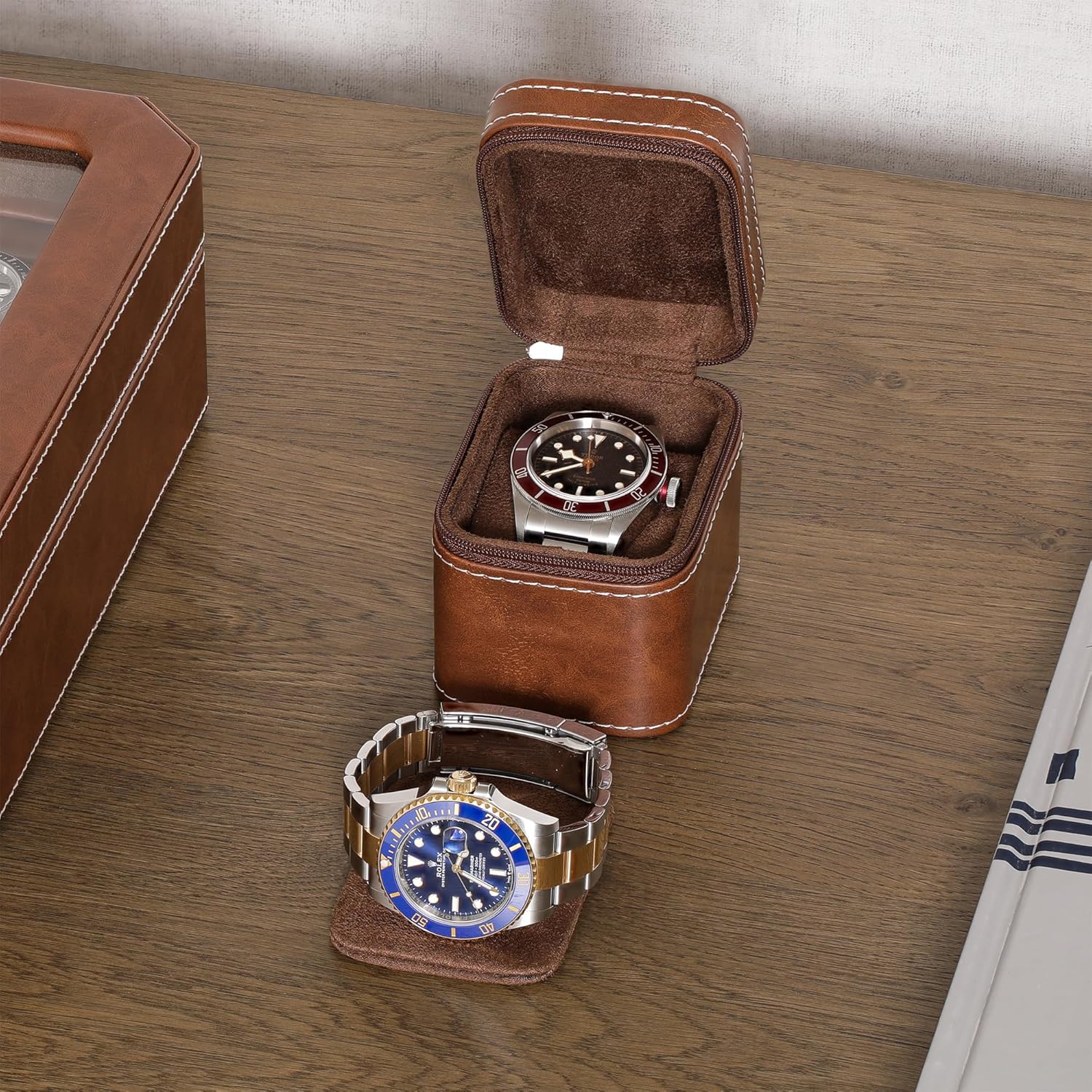 5 reviews for ROTHWELL Single Watch Travel Case | Compact PU Leather Protective Box with Microsuede Interior | Fits Watches & Smartwatches Up to 55mm (Tan/Brown)