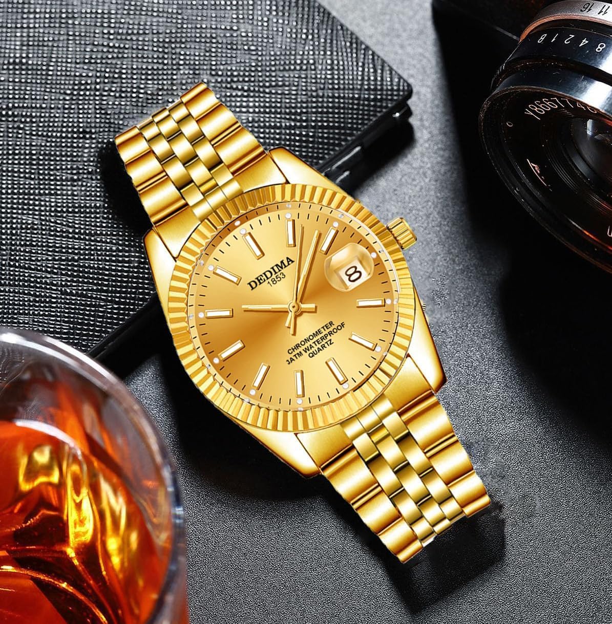 This watch is designed for men who value both form and function in a single accessory. Its 37mm case diameter strikes a balanced size—large enough to make a statement, yet compact enough to fit comfortably on most wrist sizes without feeling bulky. The combination of a stainless steel band and electroplated gold finish gives it a refined, versatile look that transitions smoothly from a business environment to casual social settings. The mineral-reinforced glass ensures the dial stays clear and scratch-free, even with daily exposure to everyday hazards like pockets, bags, or work surfaces. The original quartz movement keeps time accurately and reliably, requiring only occasional battery replacement—no daily winding or frequent calibration needed. With 3ATM water resistance, it handles the realities of modern life: morning handwashing, unexpected rain showers, or accidental spills during meals. The sealed back cover adds peace of mind by protecting the internal mechanics from dust and moisture, supporting long-term performance. Whether you’re heading to the office, meeting friends for lunch, or traveling for work, this watch offers consistent style and dependable function. It’s a practical choice for men who want a single timepiece that covers multiple aspects of their lifestyle without compromise.
