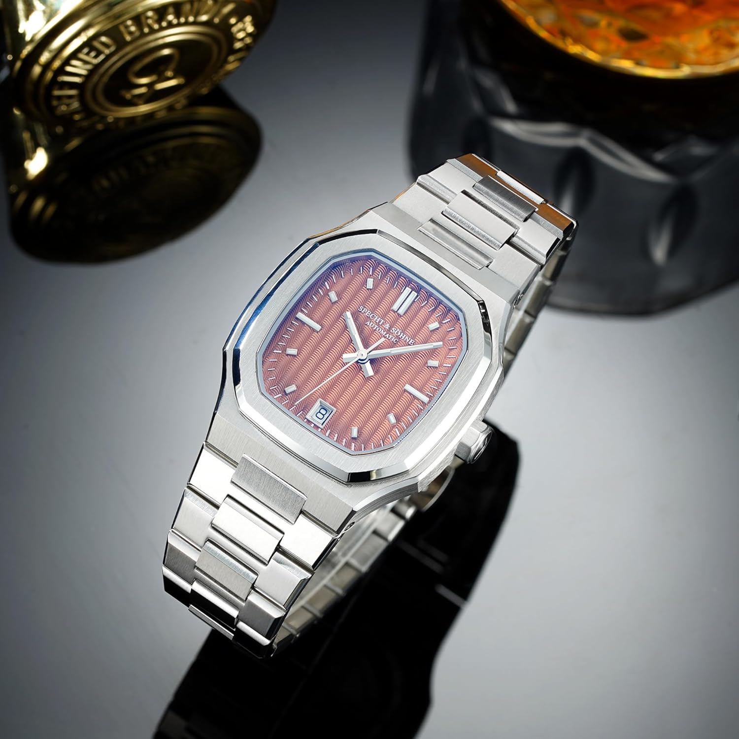 This automatic watch is designed for men who value reliability, craftsmanship, and understated elegance. Its 37mm stainless steel case offers a versatile fit, making it appropriate for both slim and average wrist sizes. The watch pairs seamlessly with business attire, enhancing professional appearances during meetings, office wear, or formal events. The Miyota 8215 movement ensures consistent accuracy and a smooth sweeping second hand, appealing to those who appreciate mechanical timekeeping. The sapphire crystal protects the dial from everyday scuffs and abrasions, maintaining visual clarity over time. With 50 meters of water resistance, the watch handles typical daily exposures such as rain, handwashing, or brief contact with water—ideal for active lifestyles that don’t involve submersion. Whether worn daily or reserved for special occasions, it delivers dependable performance and enduring style.