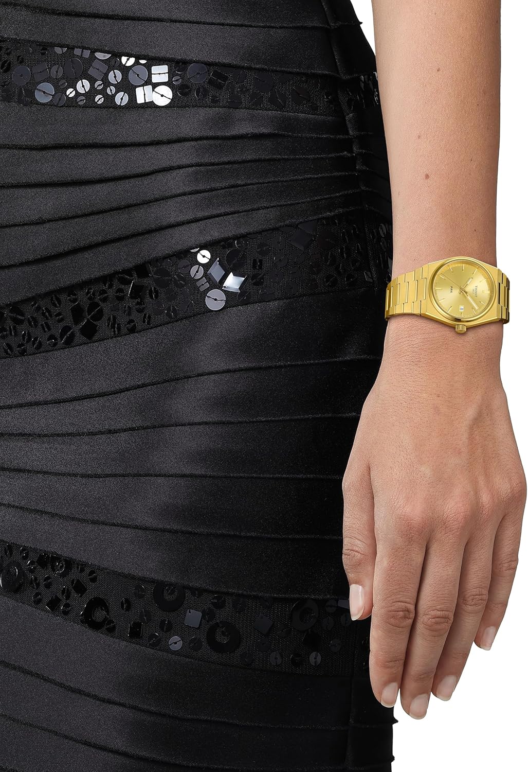 The Tissot PRX 35mm is ideal for individuals who value design heritage and modern functionality in equal measure. Its slim profile and integrated bracelet make it comfortable for all-day wear, whether at the office, during travel, or at social events. The yellow gold PVD finish adds a touch of sophistication, allowing it to pair well with both casual and formal attire. As a unisex model, it appeals to watch enthusiasts seeking a timepiece that transcends gender norms without sacrificing style. The quartz movement ensures reliability, making it a dependable everyday watch that doesn’t require frequent adjustments. Its compact 35mm case size also makes it a great option for those with smaller wrists or a preference for understated elegance.
