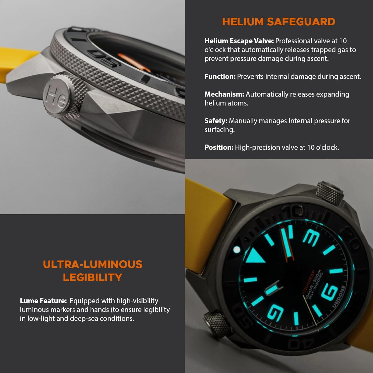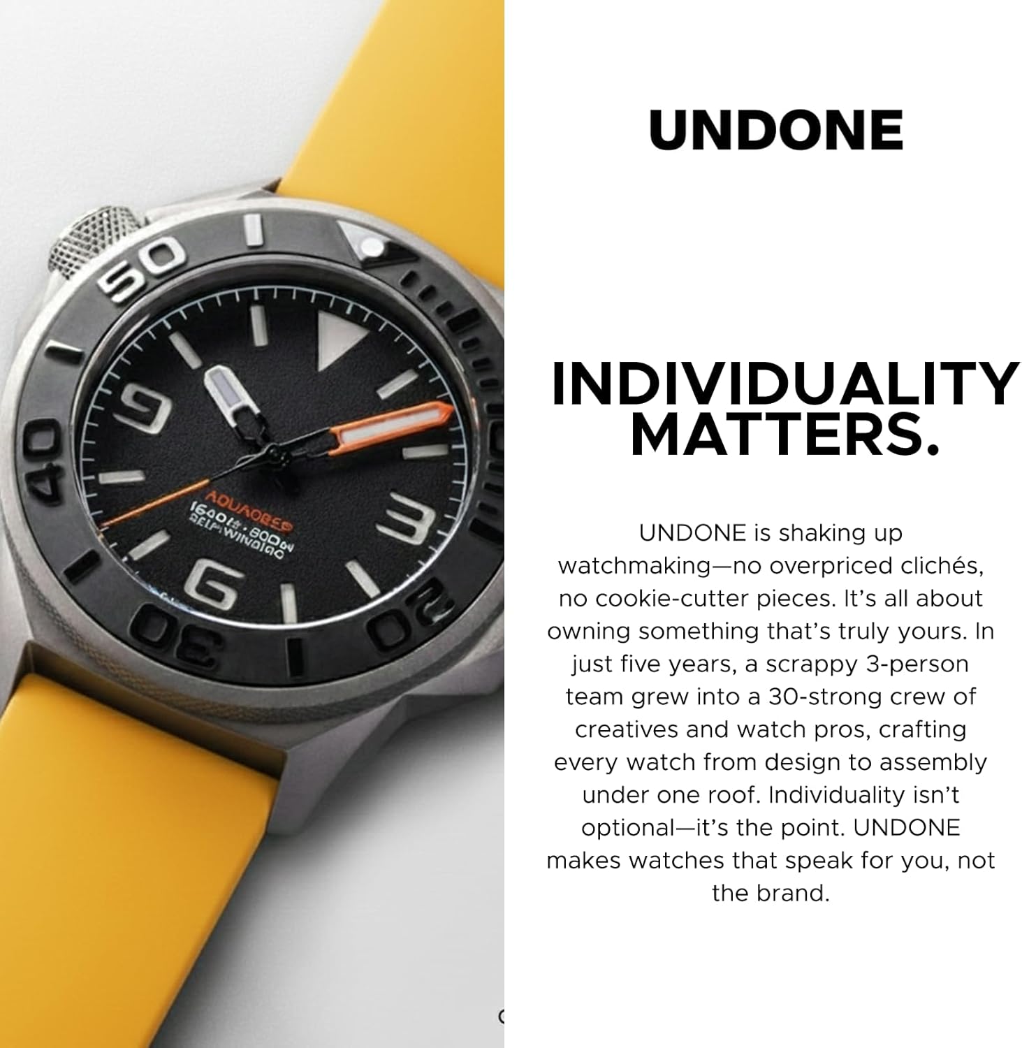 The UNDONE Aquadeep is purpose-built for divers who require dependable instrumentation during deep-water operations. Its 500-meter water resistance rating meets the standards for professional diving, ensuring reliability whether you’re exploring coral reefs or conducting technical dives. The helium escape valve is particularly valuable for saturation divers working in pressurized environments, such as underwater habitats or commercial diving operations, where helium accumulation can occur during extended submersion. Beyond diving, the watch serves as a durable everyday timepiece for active individuals who value precision, resilience, and functional design. The rubber strap enhances comfort during long wear, making it suitable for travel, outdoor adventures, or daily use in humid or wet conditions. Its automatic movement ensures consistent performance without the need for manual winding or battery changes, appealing to those who prefer mechanical craftsmanship and long-term reliability.