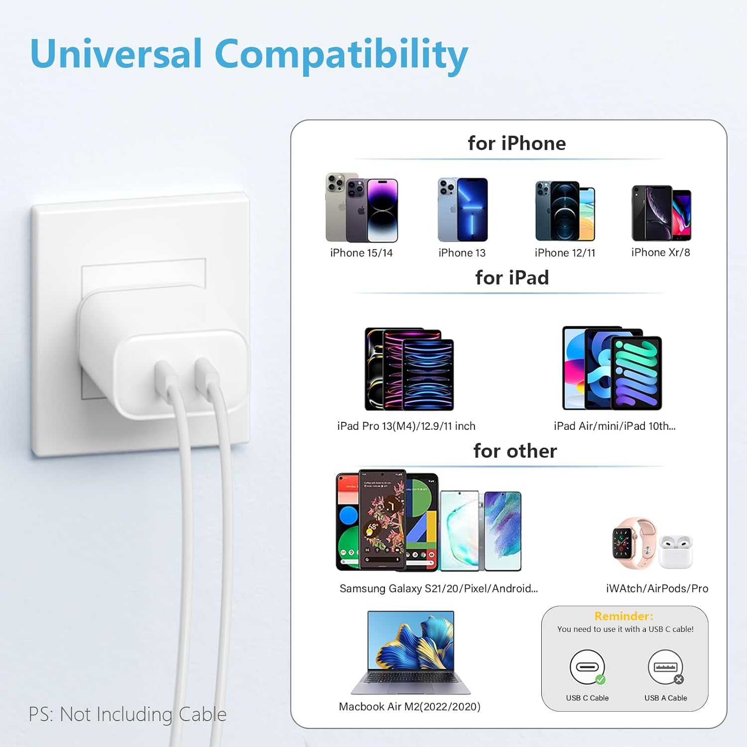 [USB C Charger Block]: 36W Dual USBC Fast Charger Block for i watch series 10/9 8 7 6 5 4 3 2 1 Ultra/SE/Compatible with iPhone 16/15 14 13 12 11 XS and Compatible with all iPad,models and Most devices on the market.