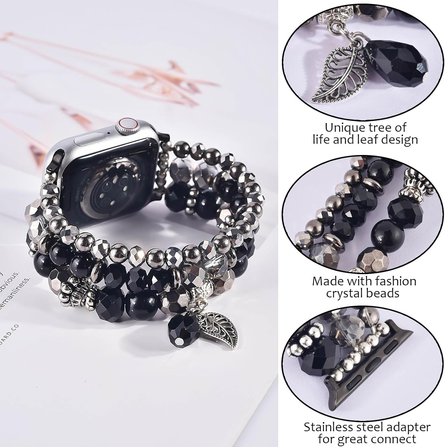 3 reviews for V-MORO Beaded Boho Bracelet Compatible with Apple Watch Band 38mm 40mm 41mm 42mm(Series 10) Women Series 9 8 7 6 SE 5 4 Fashion Cute Handmade Stretch Watch Strap for iWatch Band Series 3 2 1 Replacement (Grey Black)