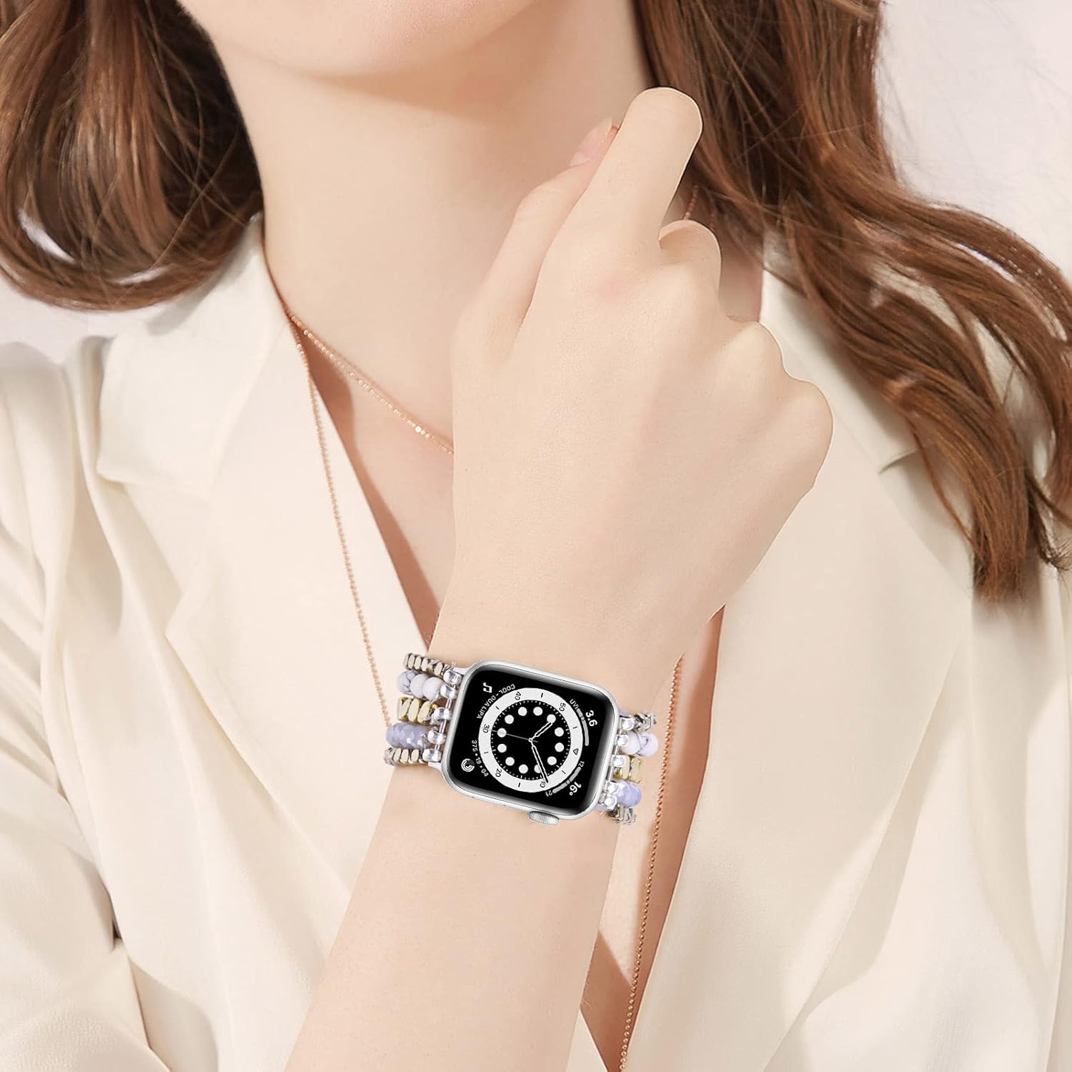 ✿Unique Cute Boho Beaded Bracelet Compatible with Apple Watch 38mm/40mm/41mm/42mm: Made of high-quality natural stone, metal beads, and colorful crystals, our beaded Apple watch band with natural stones cool to the touch helps to release stress and make the anxiety calm down
