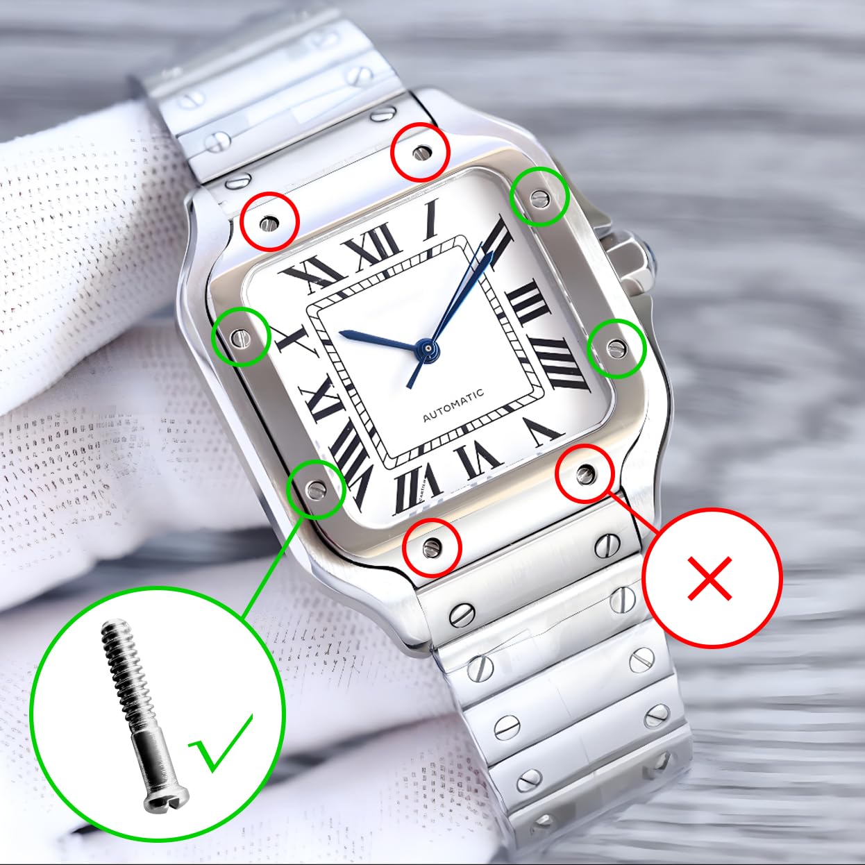 Repalcement Watch Screw Dedicated to Cartier BALLON BLEU SANTOS Fit Case back Flathead type