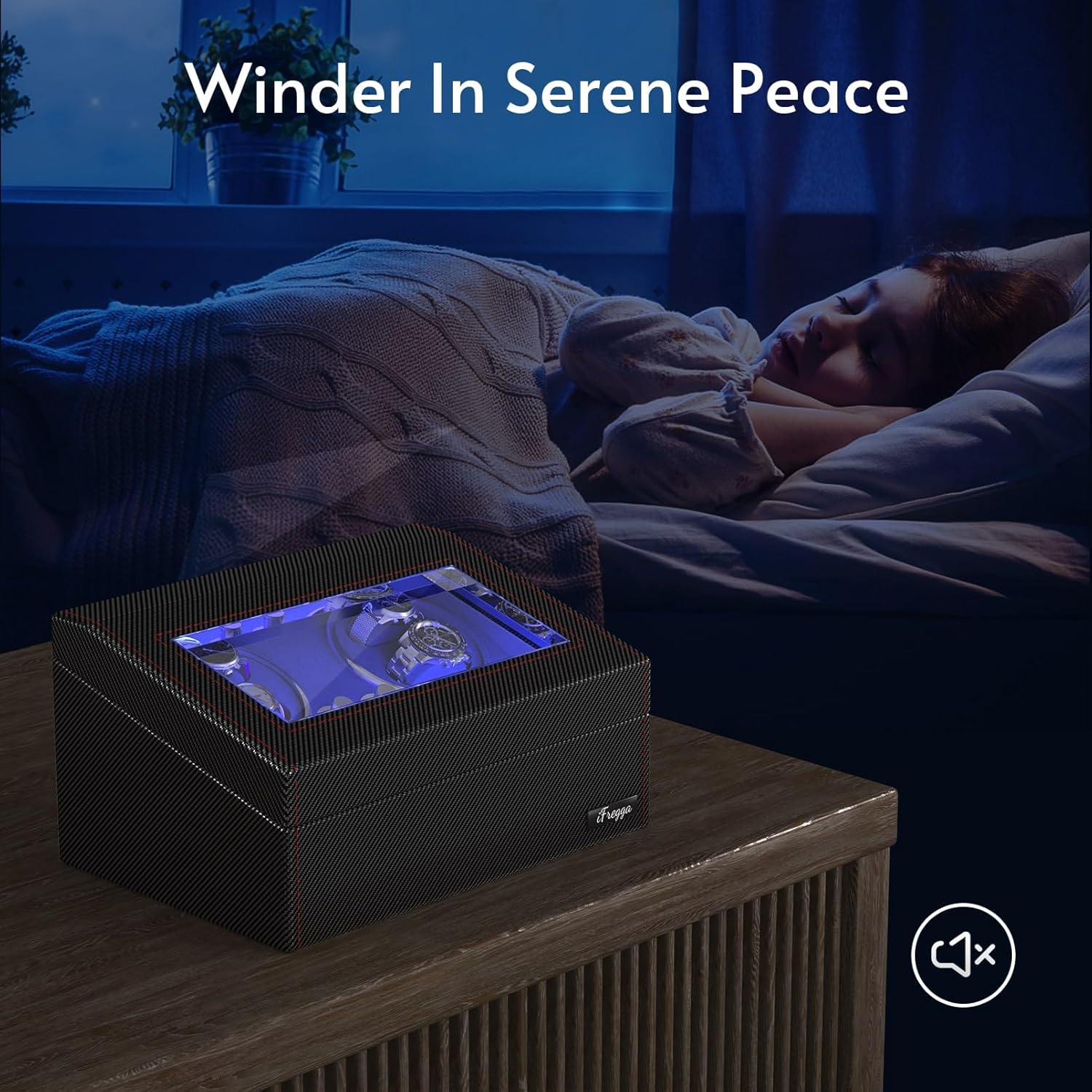 This watch winder is fantastic and looks amazing! The craftsmanship of the box is awesome. Mine is the black “fax” leather but it looks like it should cost 4x what I paid. Very well made, very sturdy. I love the blue LED lights that you can turn on and off. I wish there was a setting so the light would turn off after xtime, because if not, the light stays on all the time.I love the watch-winder modes, I think they are perfect. Winder if VERY quiet, so I highly doubt it would keep anyone awake, even if it was on your nightstand. I love that the watch holder pads/sleeves have removable inserts, so if you have a really small wrist, you can remove a few inserts and your watch will still fit perfectly. My only reservation would be if you have very large watch faces. I would check on watch size before ordering this case if you wear some of the bulkier watches. Even the extra space below might be tight for those larger faces. I really like the extra storage below the winder for your non-automatic watches. I cannot recommend this watch winder case enough. I had searched thru a ton of these before reading the reviews here and deciding this was the one. I am 100% satisfied and if you are like I was, reading reviews to find which one to purchase, look no further, this is the case you want (no I was not sent one for free or anything, I just honestly feel this product goes above and beyond way consumers are looking for I had to leave a review.) Do you self a favor and order this case, you will not regret it.