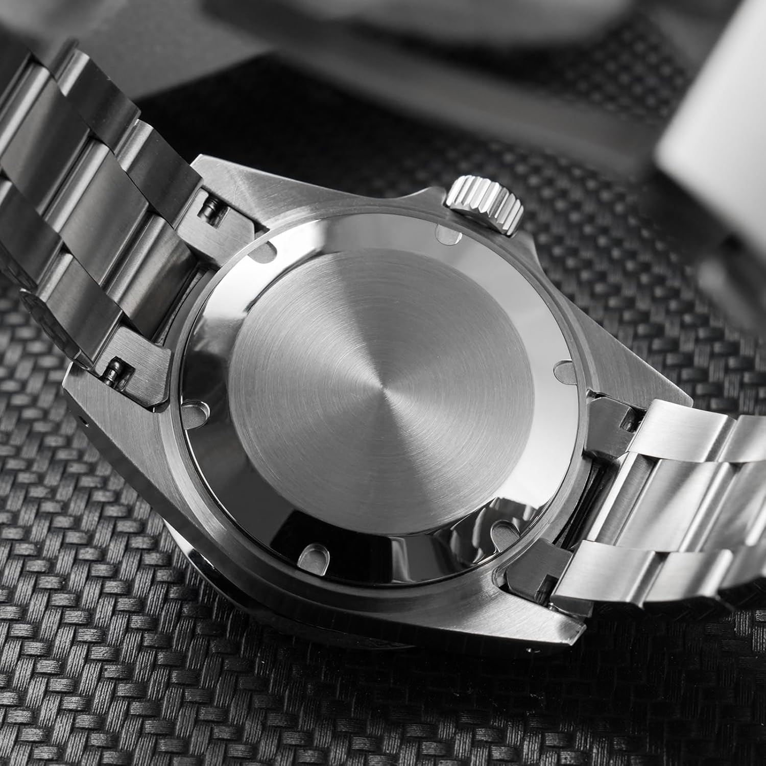 - 316L Stainless Steel Construction – The case and taper bracelet (20mm to 16mm) are made from marine-grade 316L stainless steel, offering excellent corrosion resistance, strength, and a refined finish that withstands saltwater and daily wear.