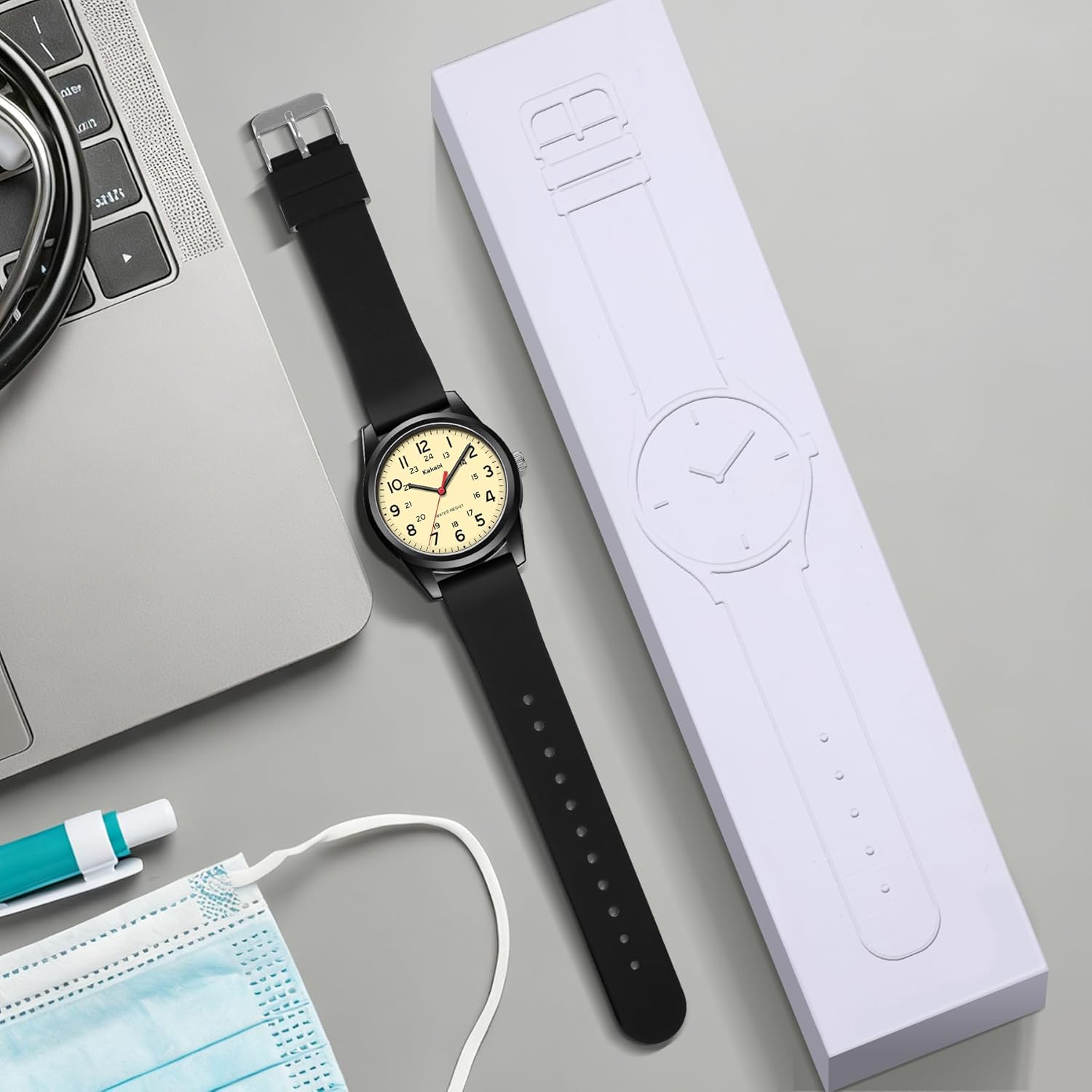 This watch is built for real-world use across a variety of everyday scenarios. Its 24-hour dial makes it especially useful for professionals in fields like emergency services, logistics, or outdoor recreation, where distinguishing between AM and PM is critical. The silicone strap ensures comfort during extended wear, whether you’re at work, exercising, or traveling. Thanks to its 30M water resistance, it stands up to rain, handwashing, and accidental submersion, so you won’t need to remove it during routine activities. The unisex design and neutral colorway make it a practical choice for couples or individuals who prefer a watch that transitions easily from casual to semi-formal settings. Lightweight at just 3.21 ounces, it won’t weigh down your wrist, and the compact package size makes it easy to store or gift.