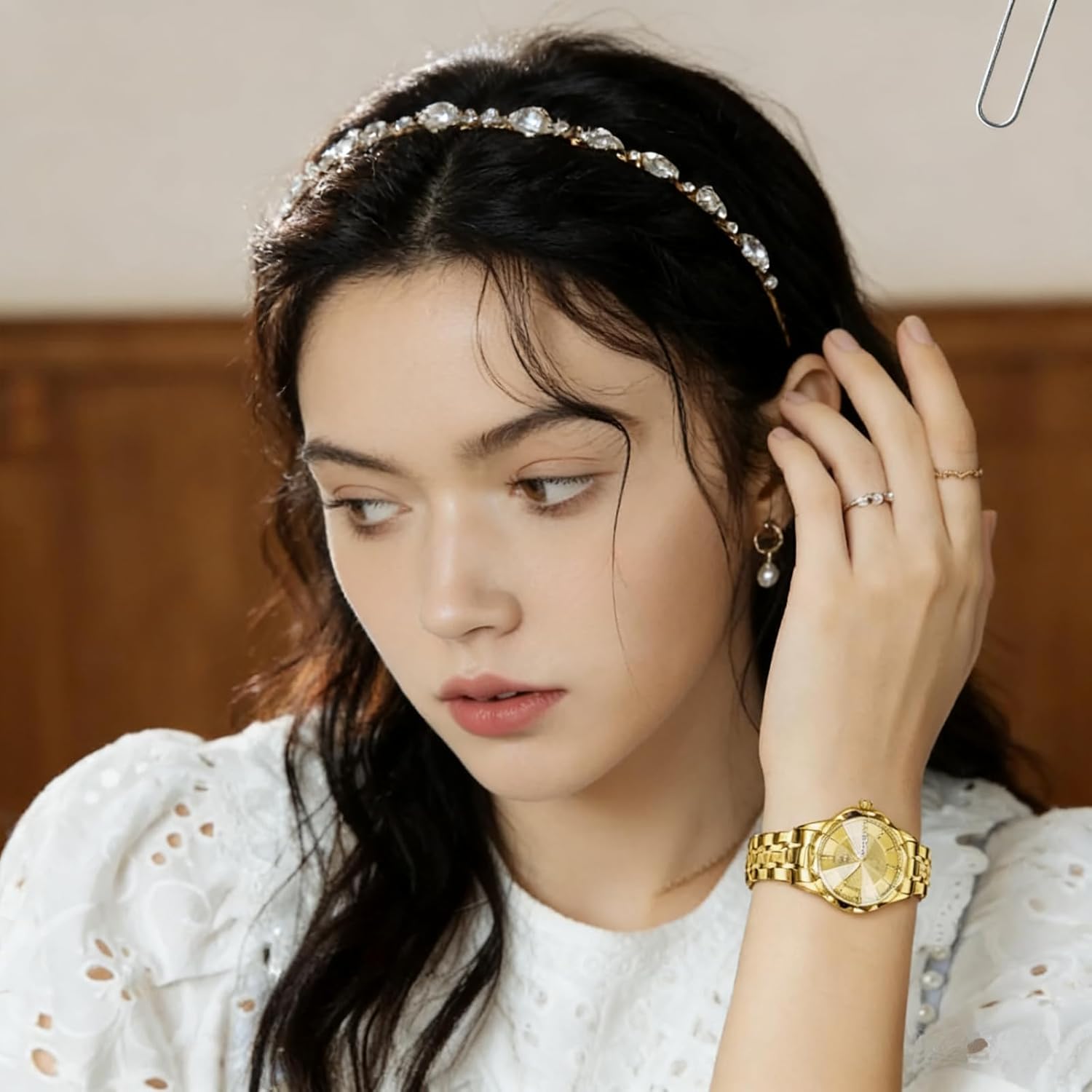 Designed for the modern woman who values both style and precision, this women’s watch by OLEVS blends luxury elegance with everyday functionality. Its refined aesthetic and thoughtful engineering make it a standout choice for those seeking a timepiece that complements a polished lifestyle. Ideal for small wrists, the watch features a slim, proportionate case and a lightweight build that ensures comfort throughout the day. Whether you’re dressing for the office, attending a dinner event, or simply running errands, this watch adds a touch of sophistication without overwhelming delicate features.